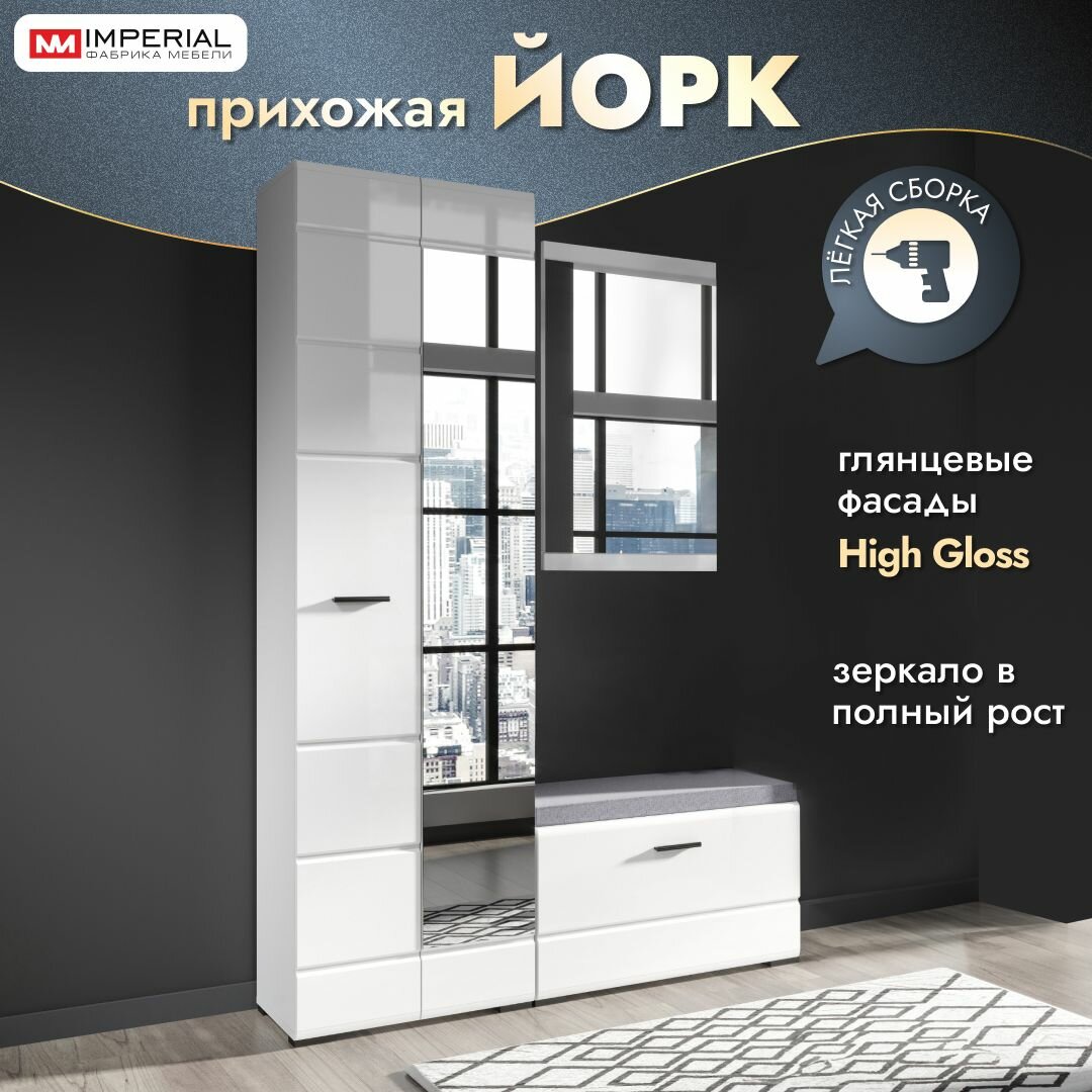 Прихожая Йорк 142Х36х205 с угловым шкафом, тумбой и зеркалом мебель в прихожую белый глянец 29 999 ₽