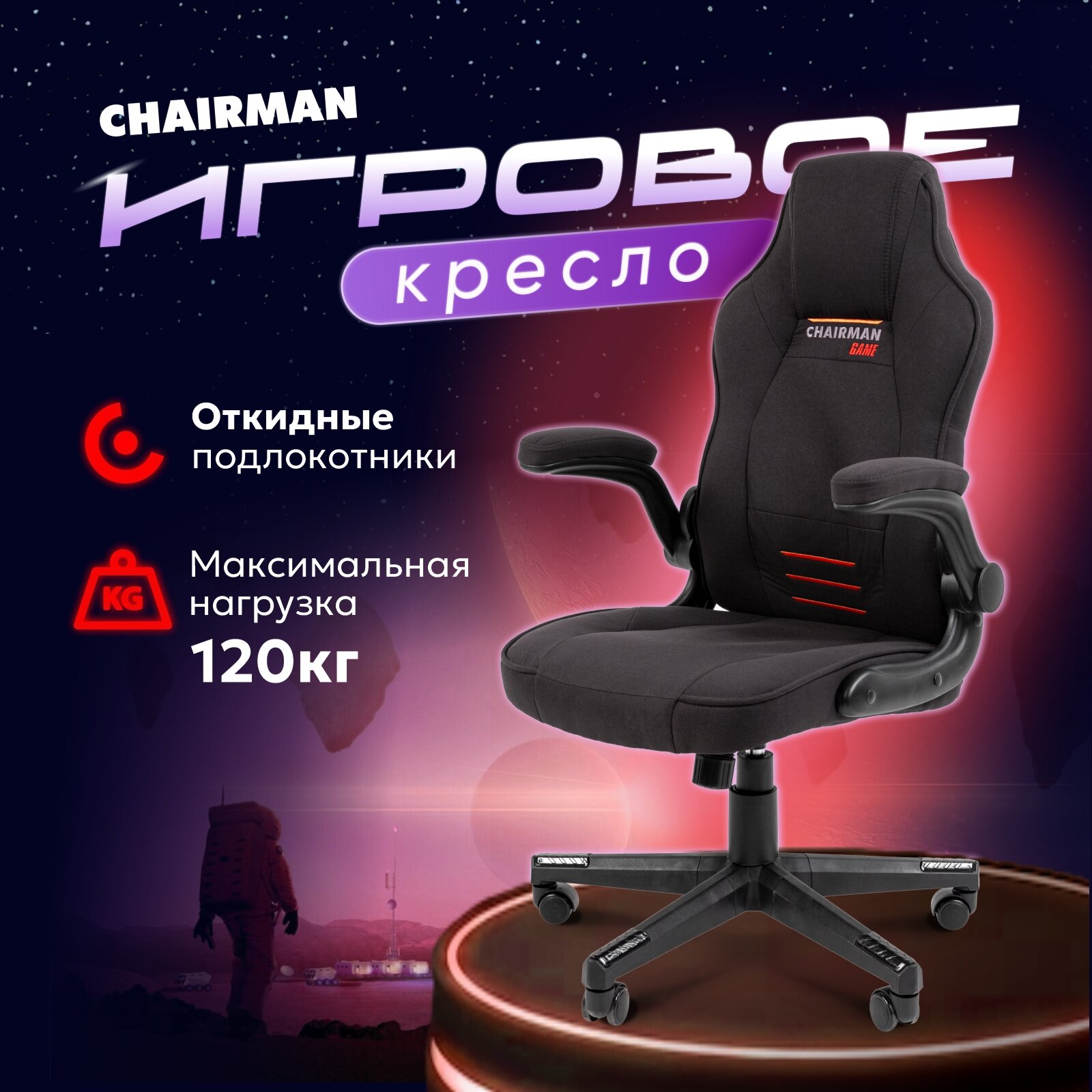 Игровое компьютерное кресло CHAIRMAN CH 51, ткань, черный, с откидными подлокотниками информация: