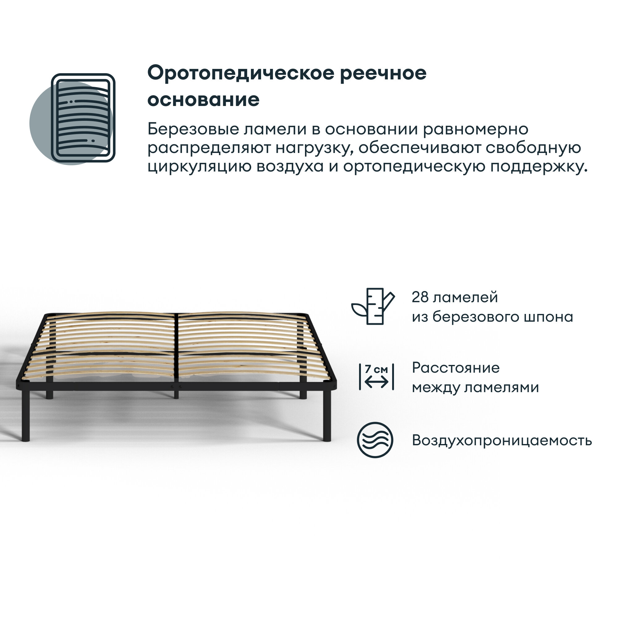 Двуспальная кровать HYPNOZ Frame 140х200, черная информация: