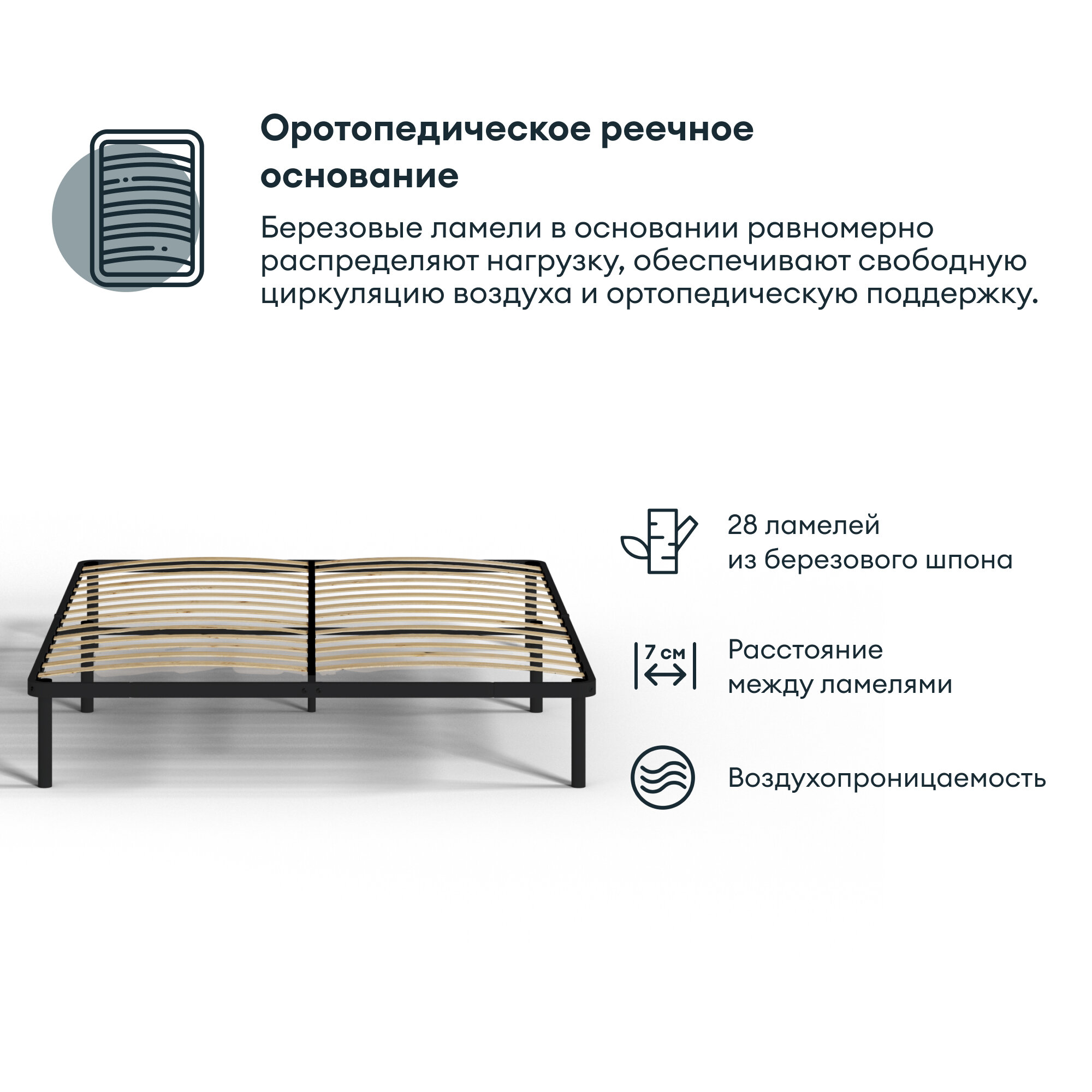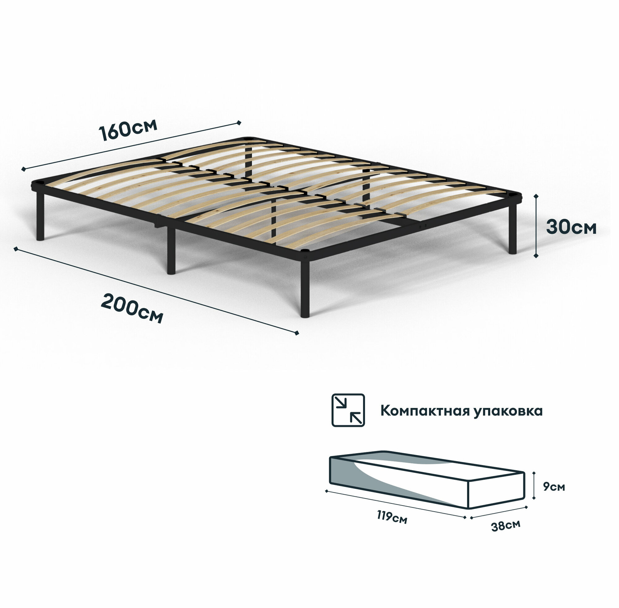 Двуспальная кровать HYPNOZ Frame 160х200, черная информация:
