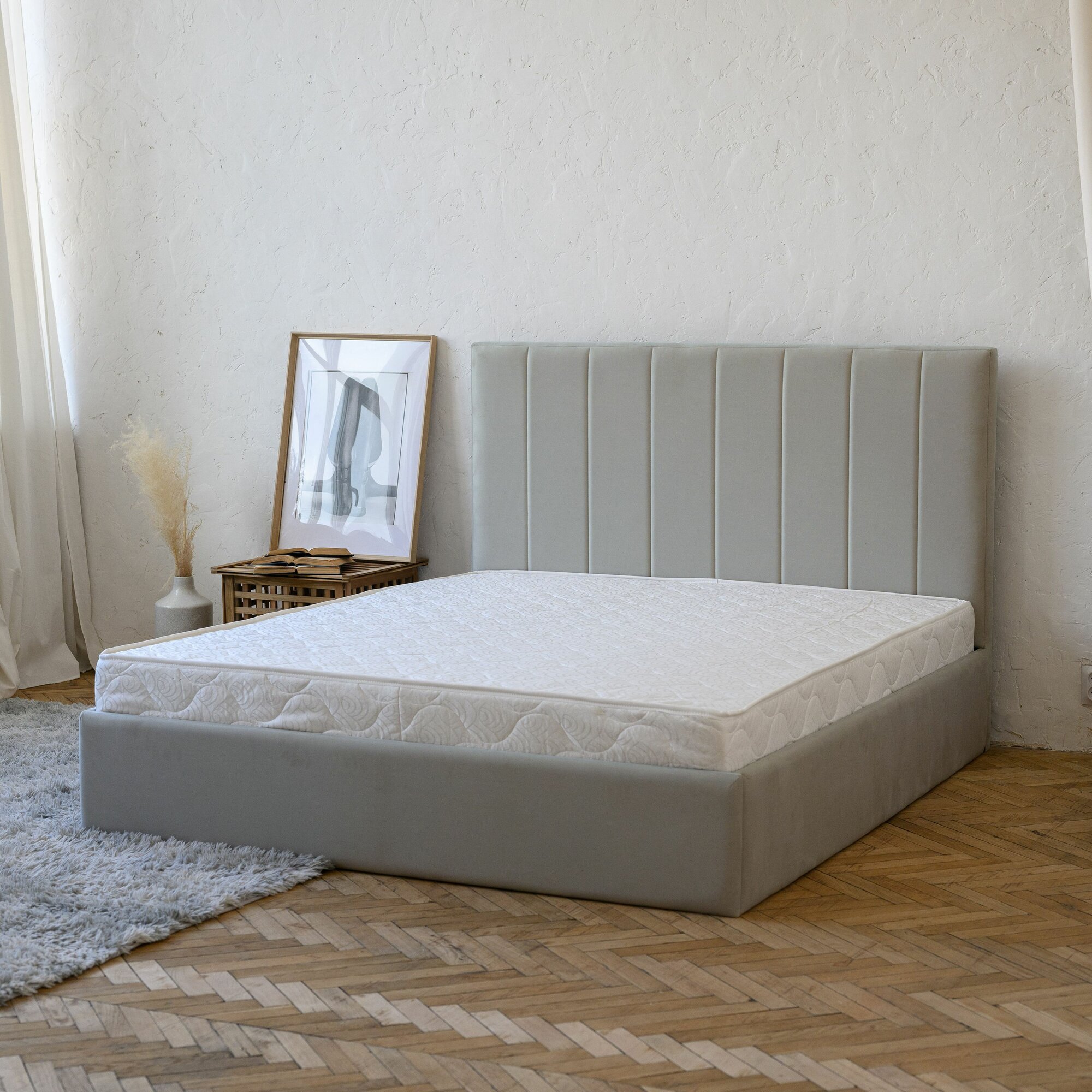 Кровать 140х200 двуспальная Маргарида, с подъёмным механизмом, с ящиками, с мягким изголовьем, светло-серая 30 949 ₽