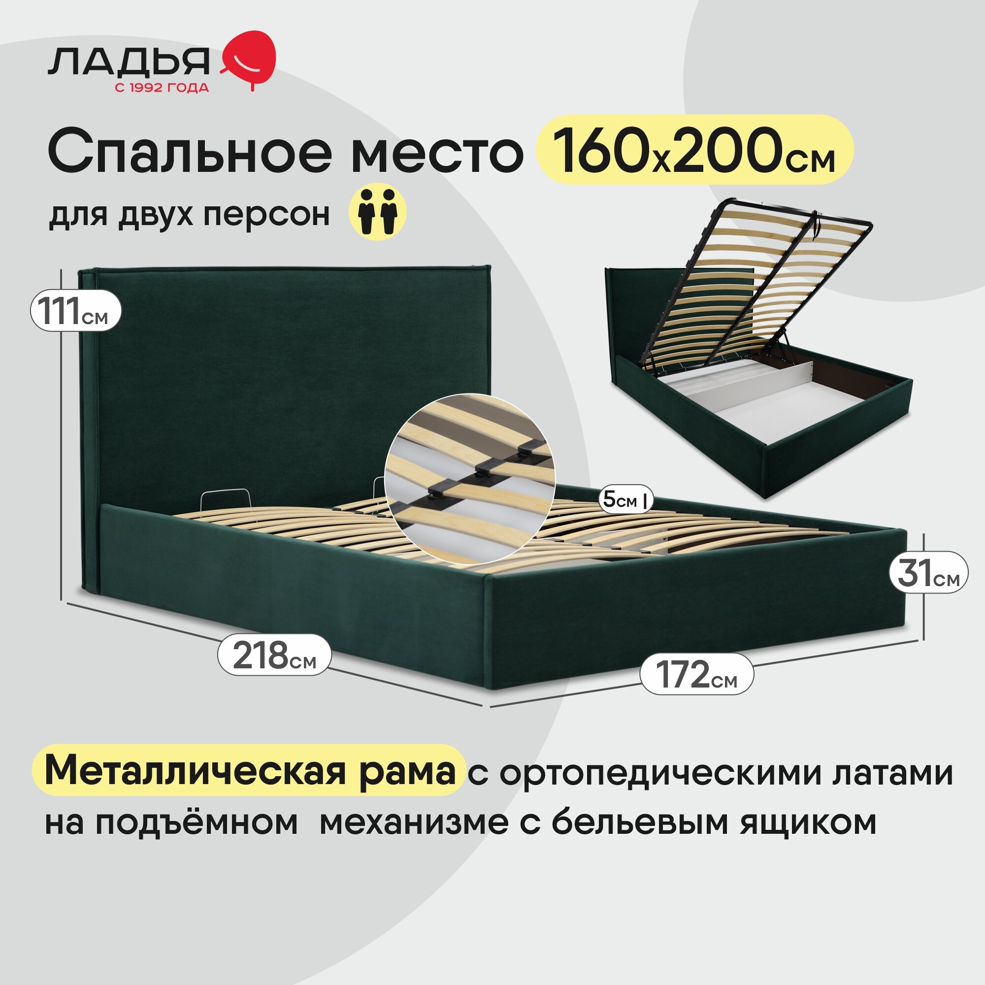 Отзывы на Двуспальная кровать Лутон 160х200, с подъемным механизмом, Ultra forest