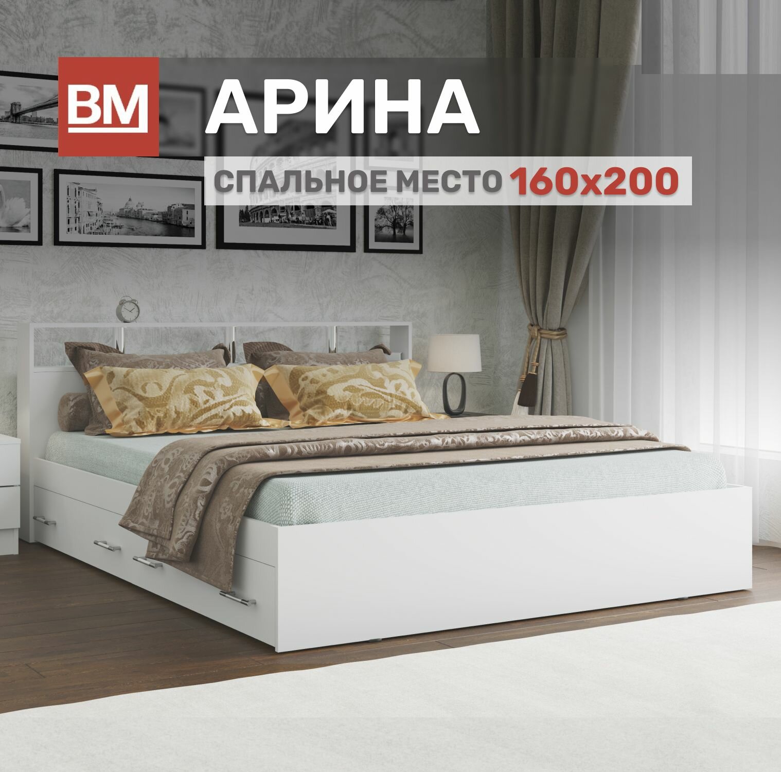 10 цен на Кровать двуспальная арина 160х200, Белый с ящиками