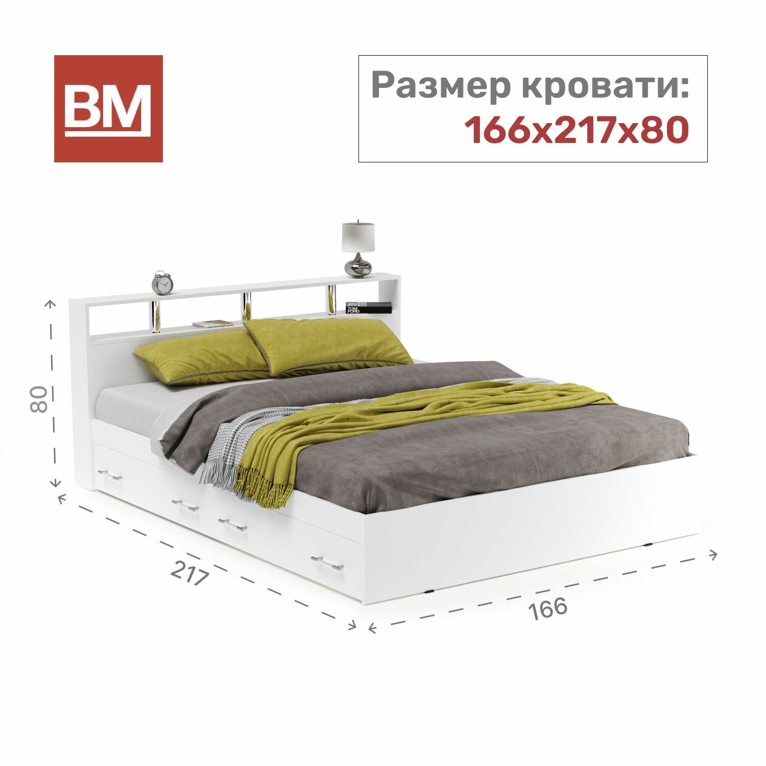 Кровать двуспальная арина 160х200, Белый с ящиками информация: