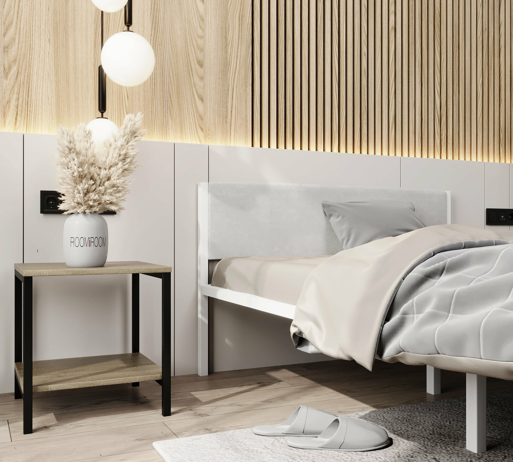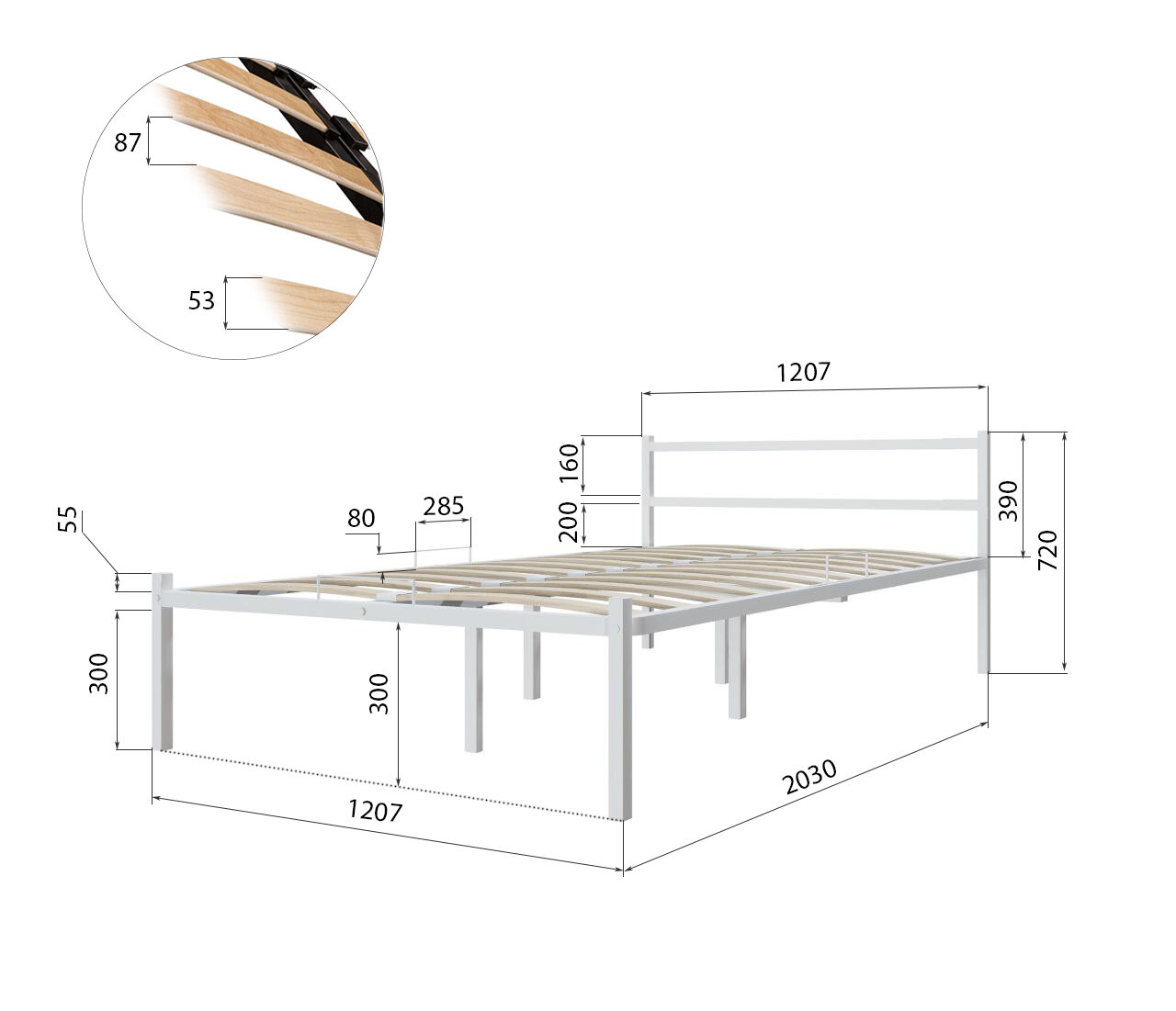 Металлическая кровать белая с мягким изголовьем молочного цвета, 120 х 200 информация: