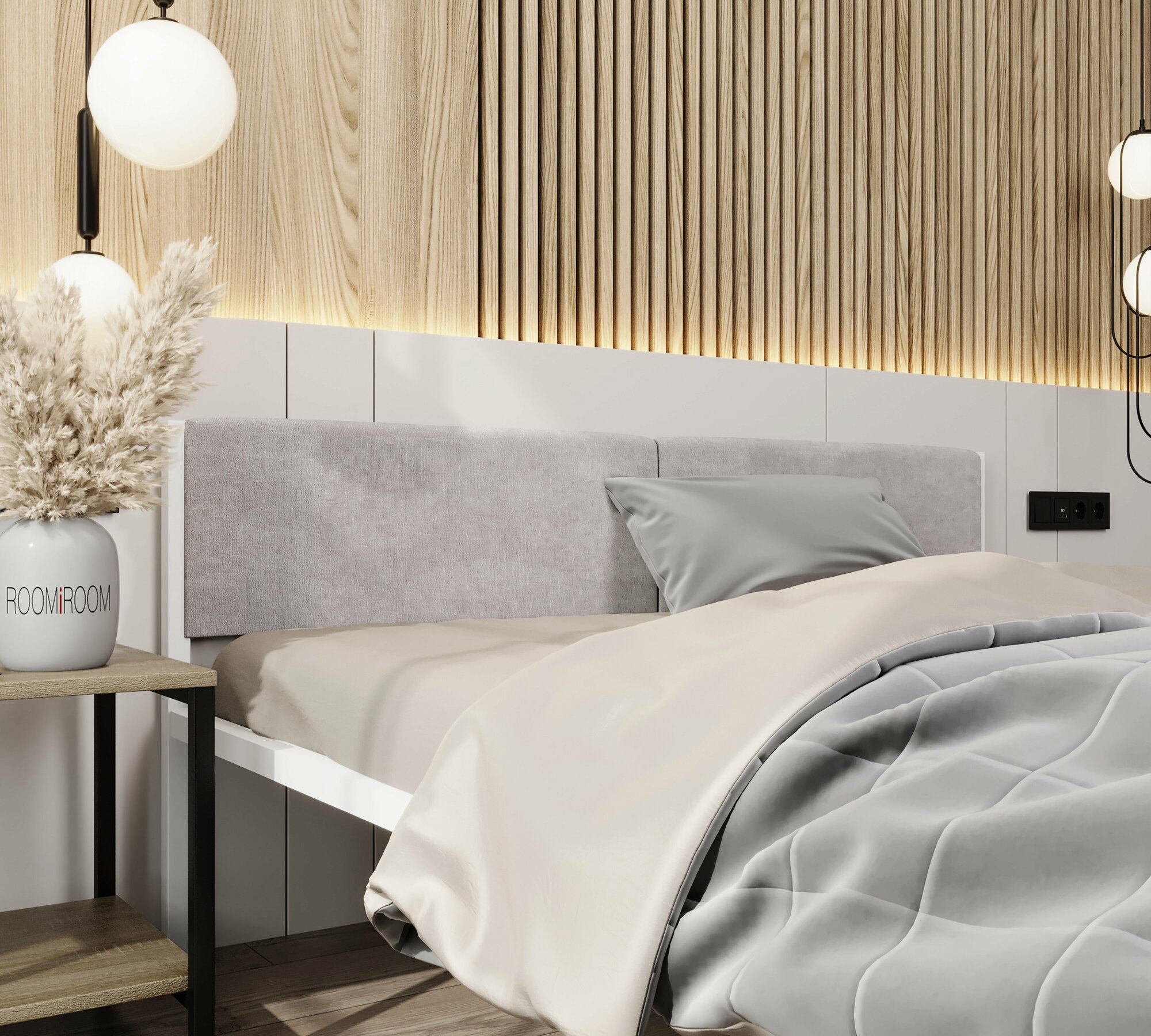 Металлическая кровать белая с мягким изголовьем молочного цвета, 140 х 200 информация: