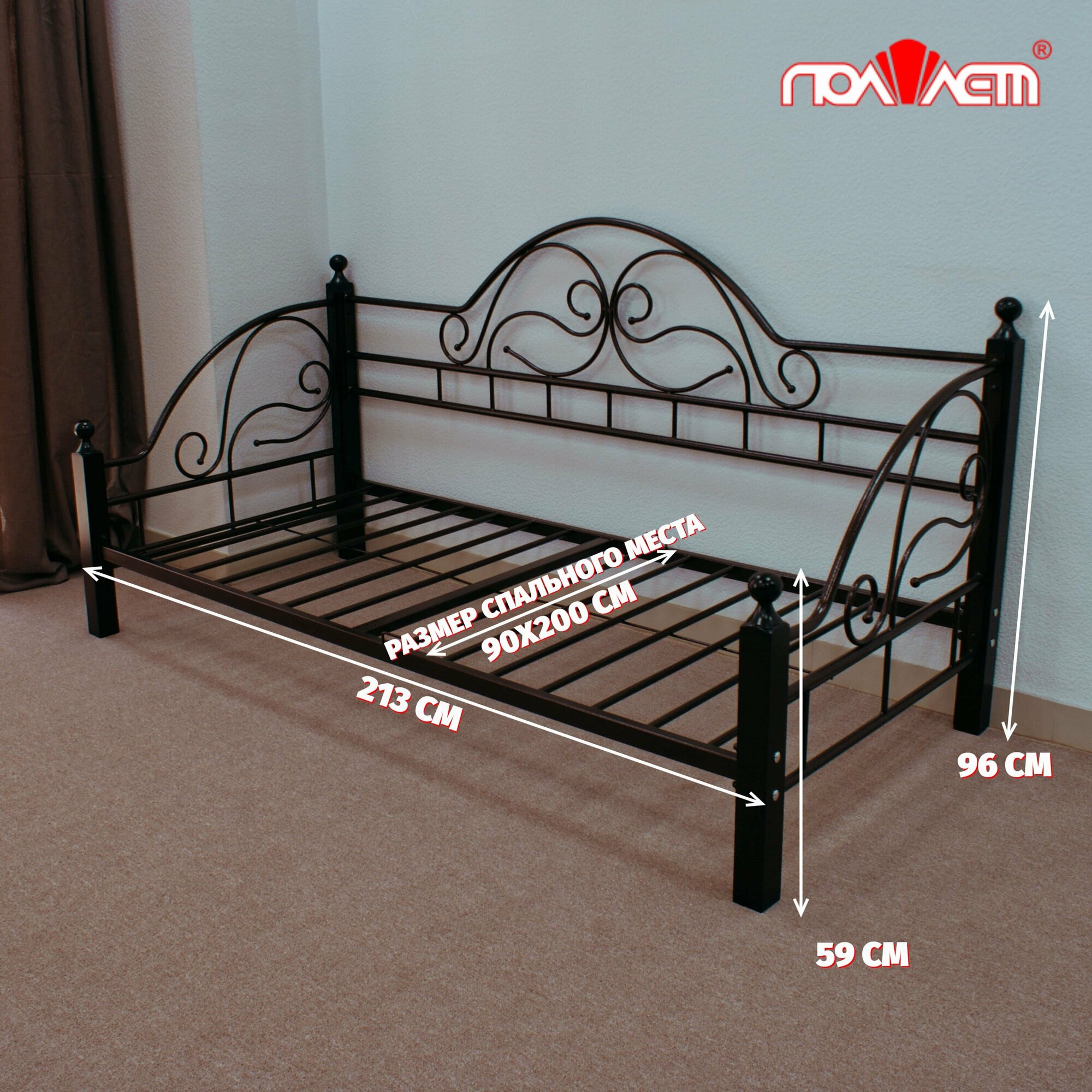Кровать-тахта металлическая односпальная "Сильва" 90 х 200 с металлическим основанием информация: