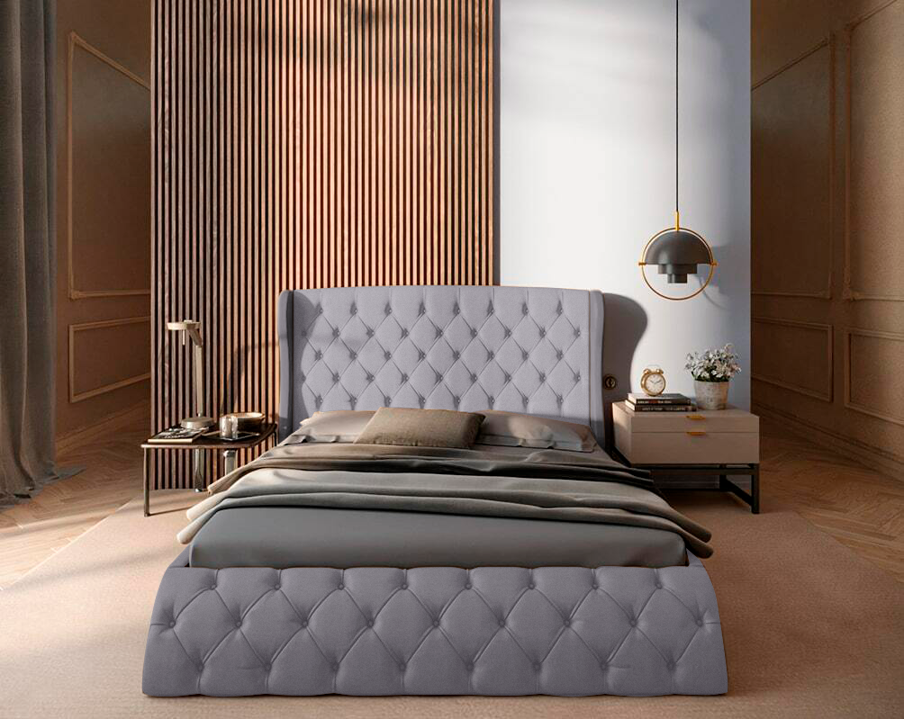 Двуспальная кровать 200x200, Lavr, с мягким изголовьем, с ящиком, велюр, серый 57 167 ₽