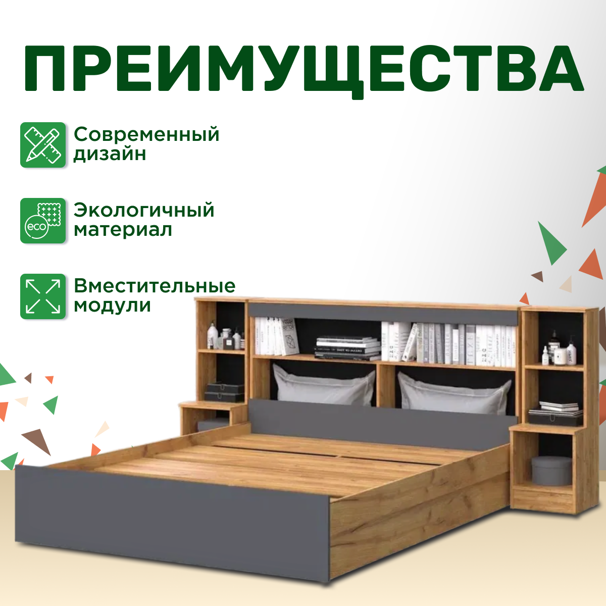 Двуспальная кровать Бася 1,6м (Графит/Дуб крафт)