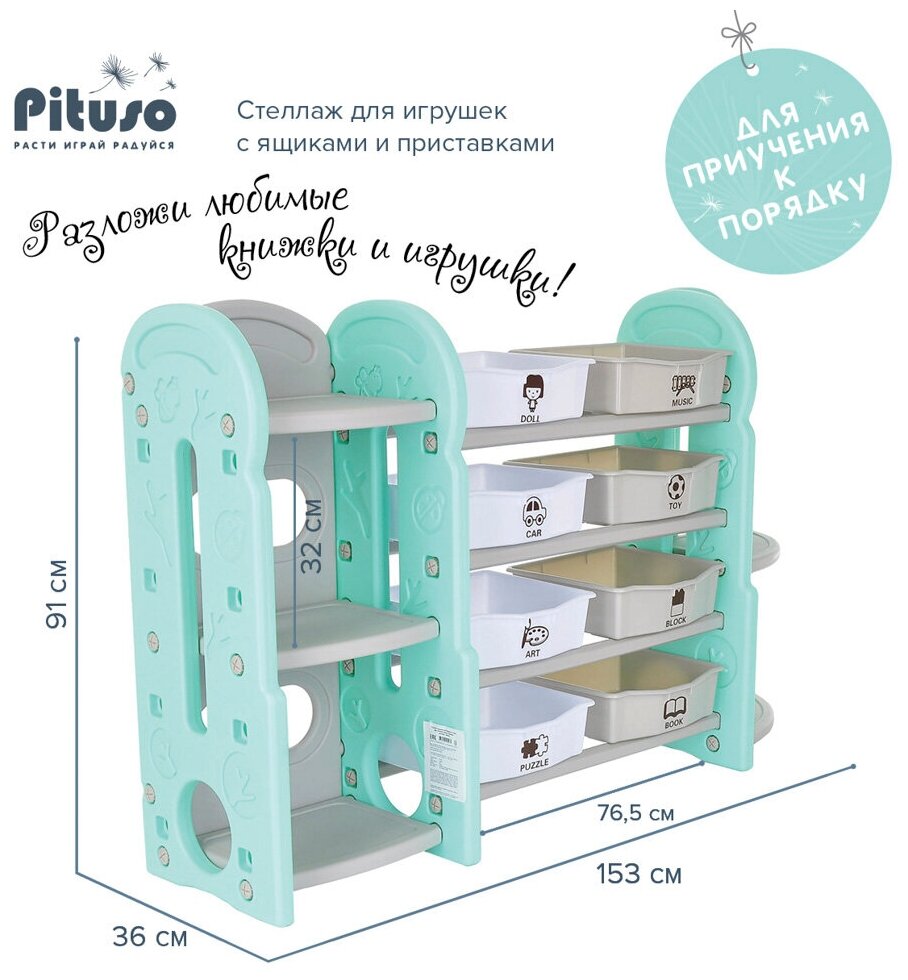 Отзывы на Стеллаж для игрушек Pituso с ящиками и приставками 4 полки Бирюзовый (угловая полка)