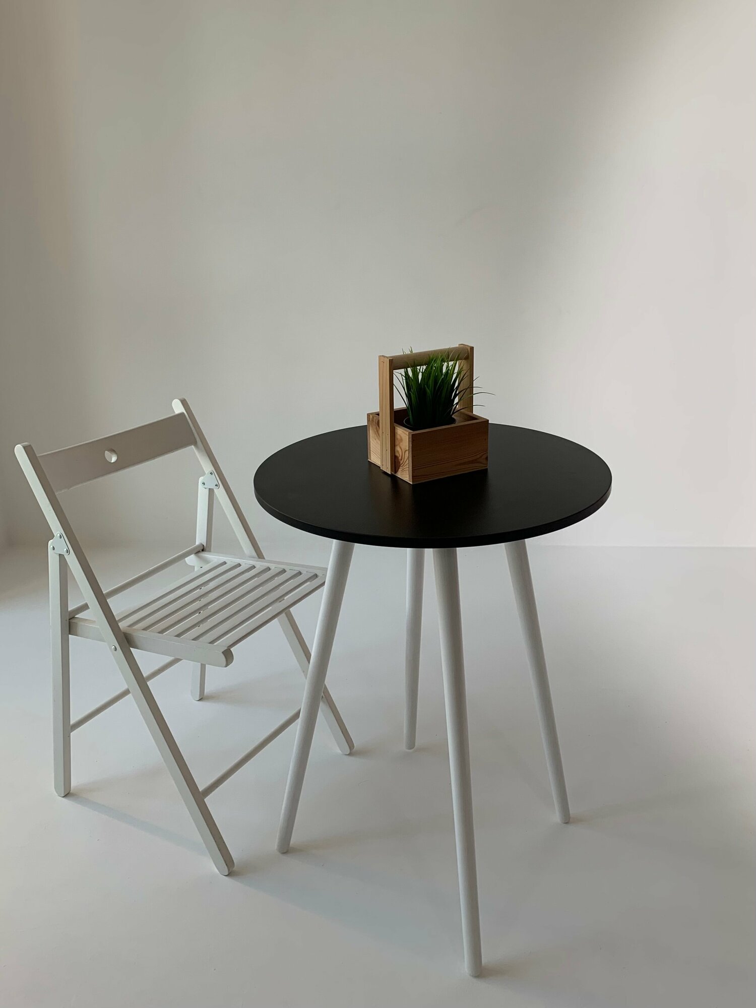 Стол кухонный лофт обеденный круглый, белый, подстолье - ножки дерево "Черный", ЛДСП цвет "Белый" 60х75 см 4 881 ₽