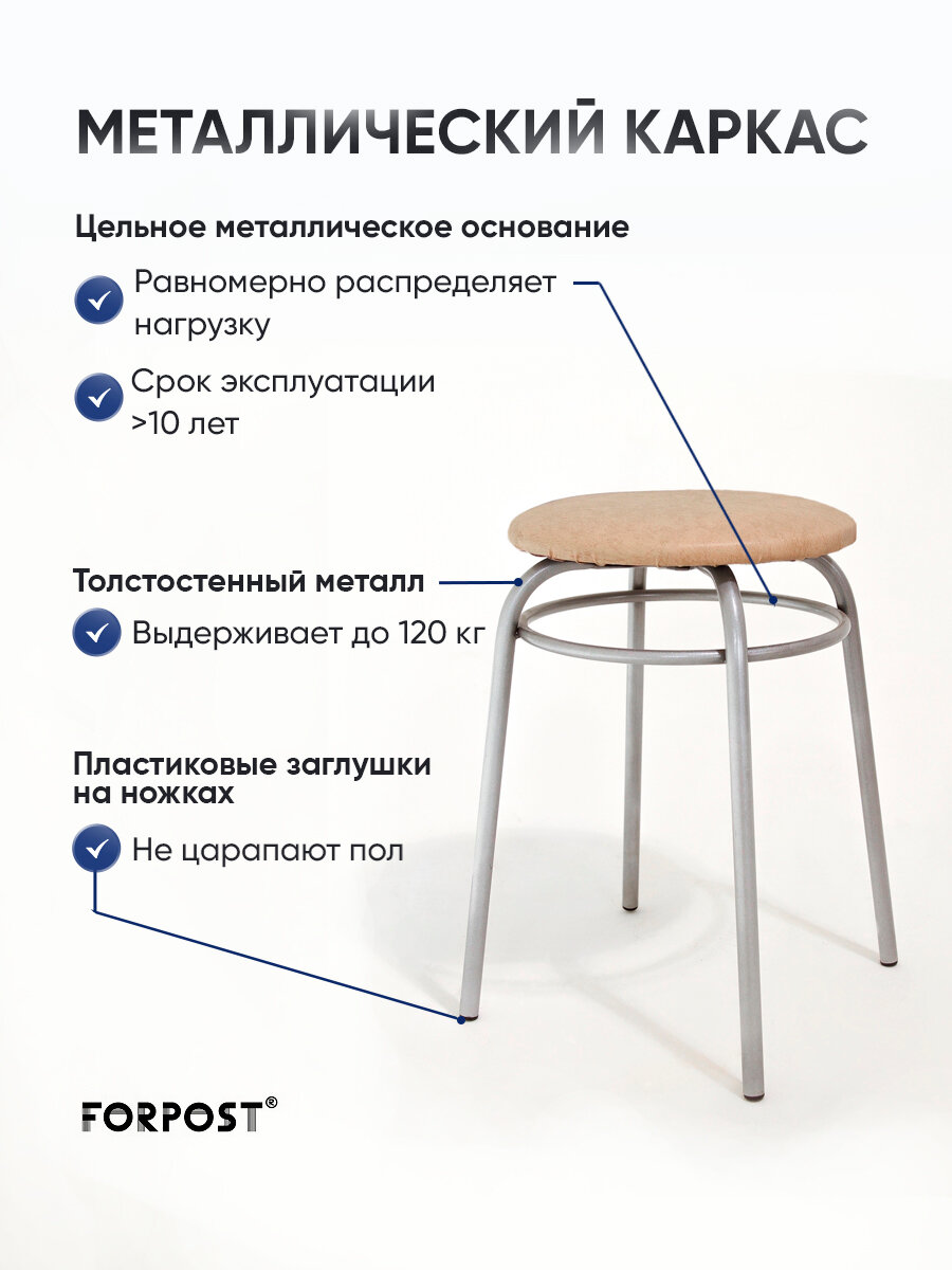 Табурет для кухни круглый с кольцом, 4 штуки бежевый информация: