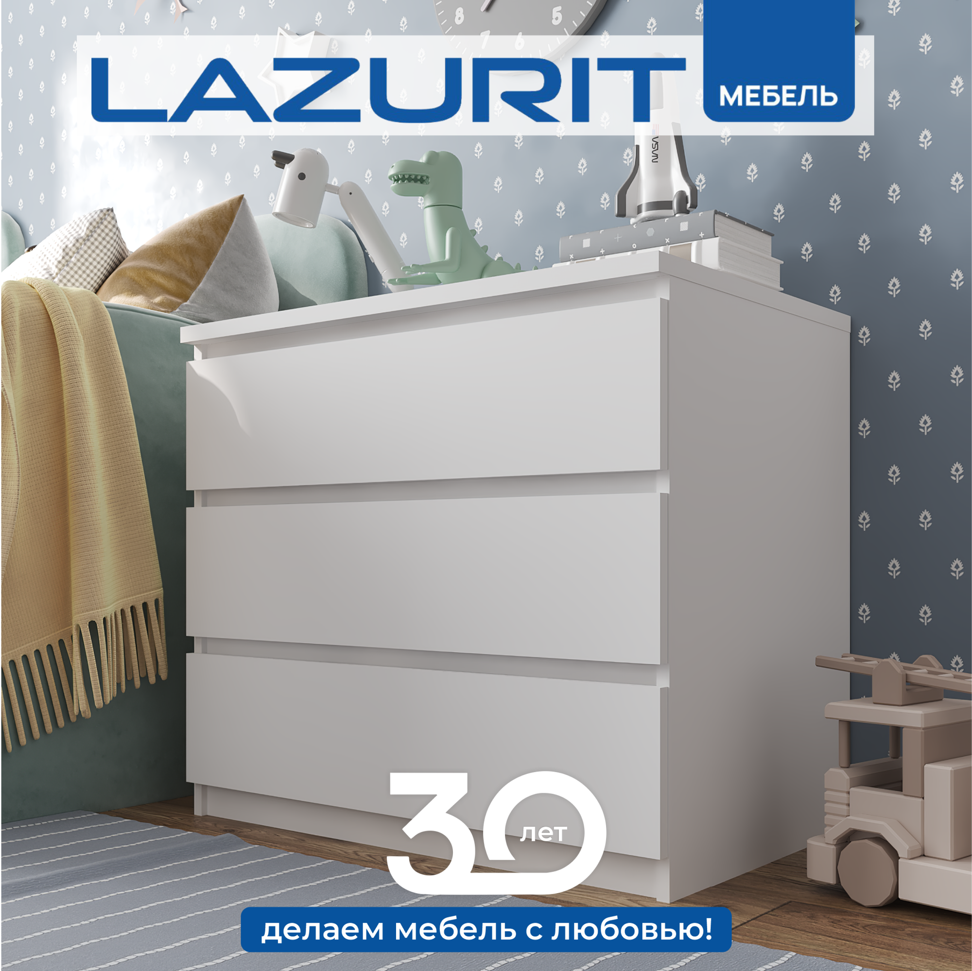 Отзывы на Комод для одежды белый Lazurit Scandi узкий деревянный 3 ящика 79х51х71 см