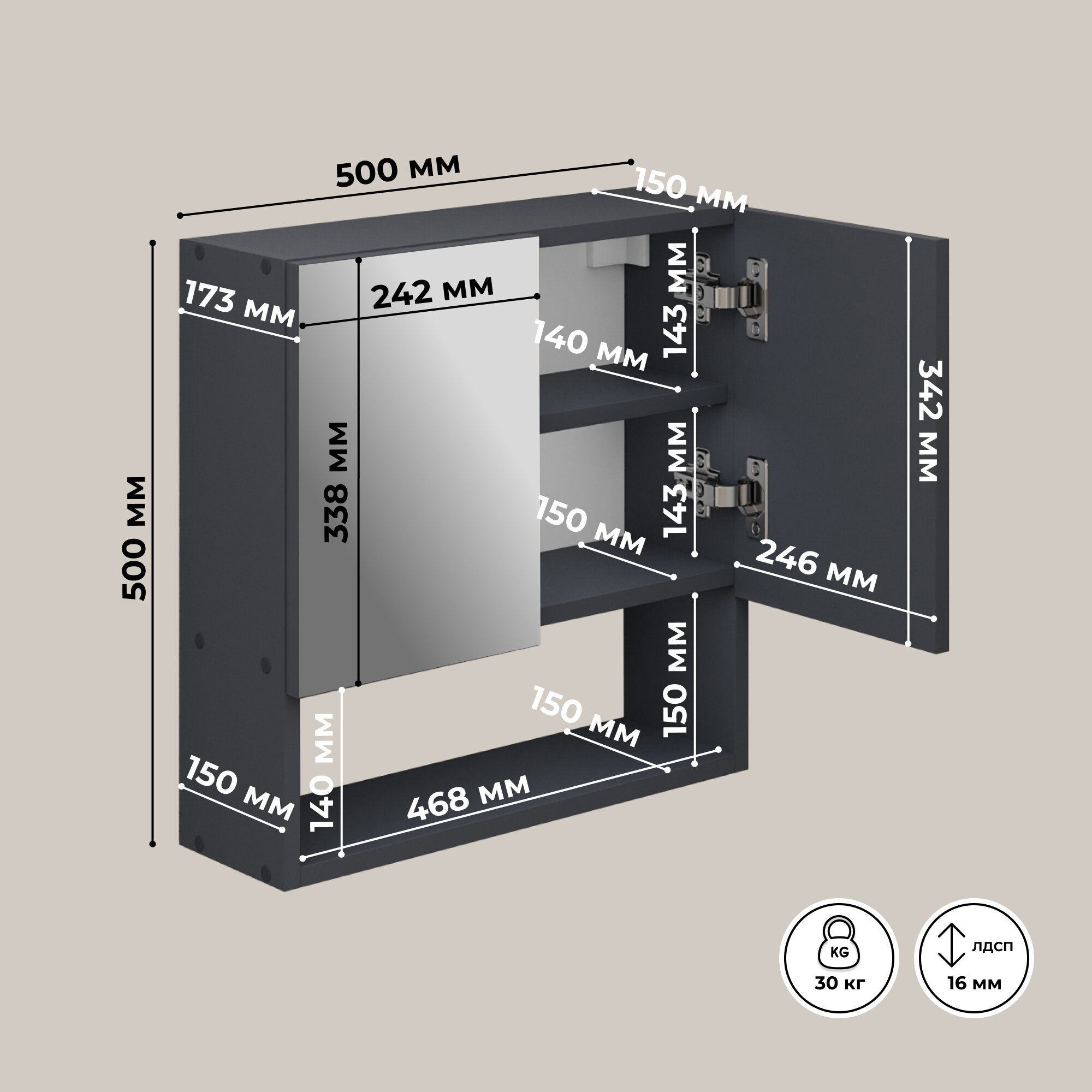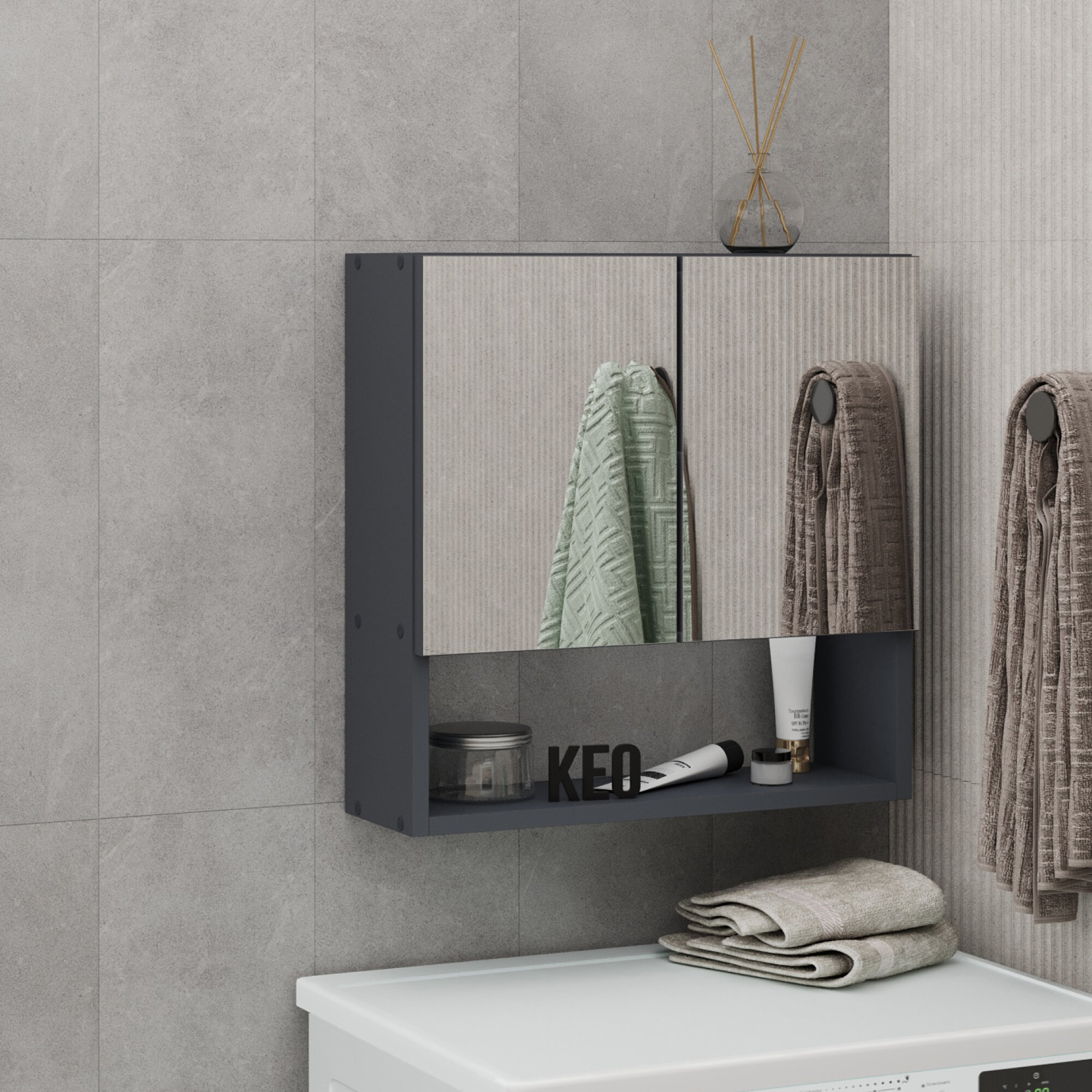 Отзывы на Шкаф с зеркалом навесной в ванную для ванной прихожей подвесной деревянный Кео ШКН-150 графит 500х173х500 мм