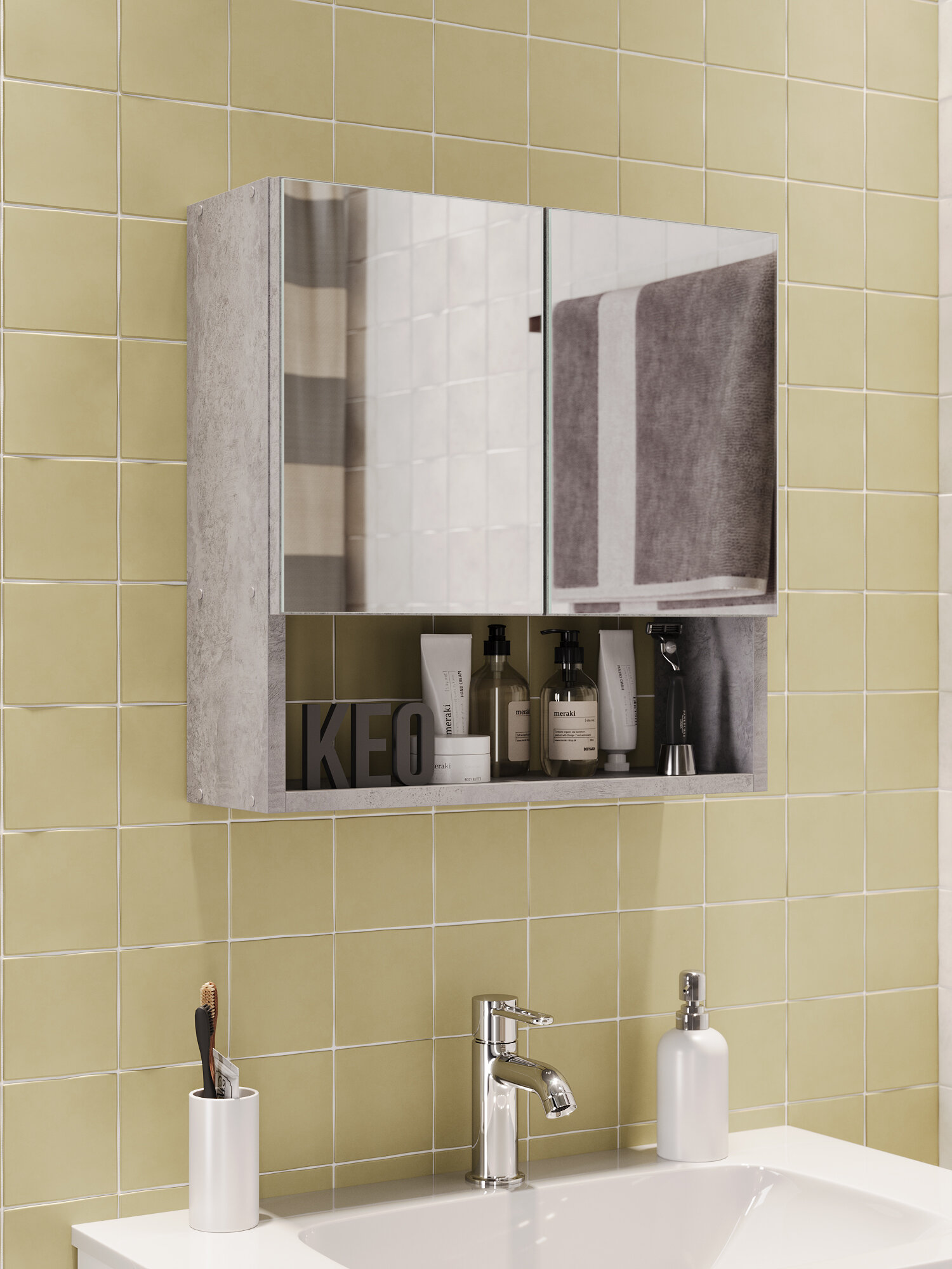 Отзывы на Шкаф навесной с зеркалом для ванной прихожей подвесной деревянный Кео ШКН-150 бетон 500х173х500 мм