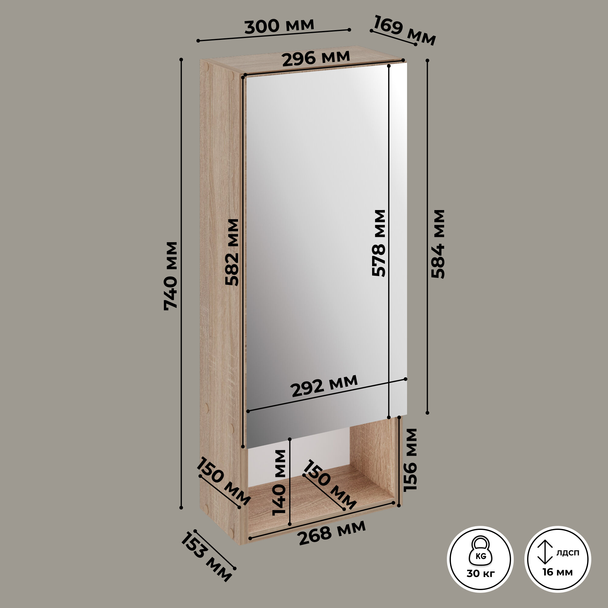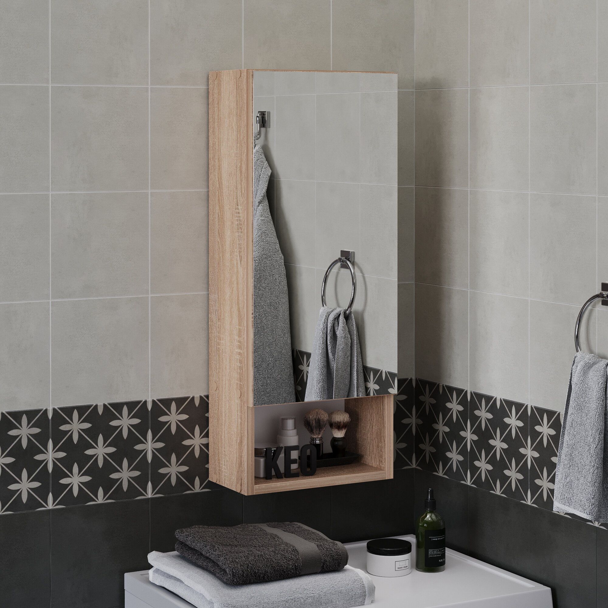 Шкаф с зеркалом навесной для ванной или прихожей подвесной Кео ШКН-150 дуб сонома 500х173х500 2 848 ₽