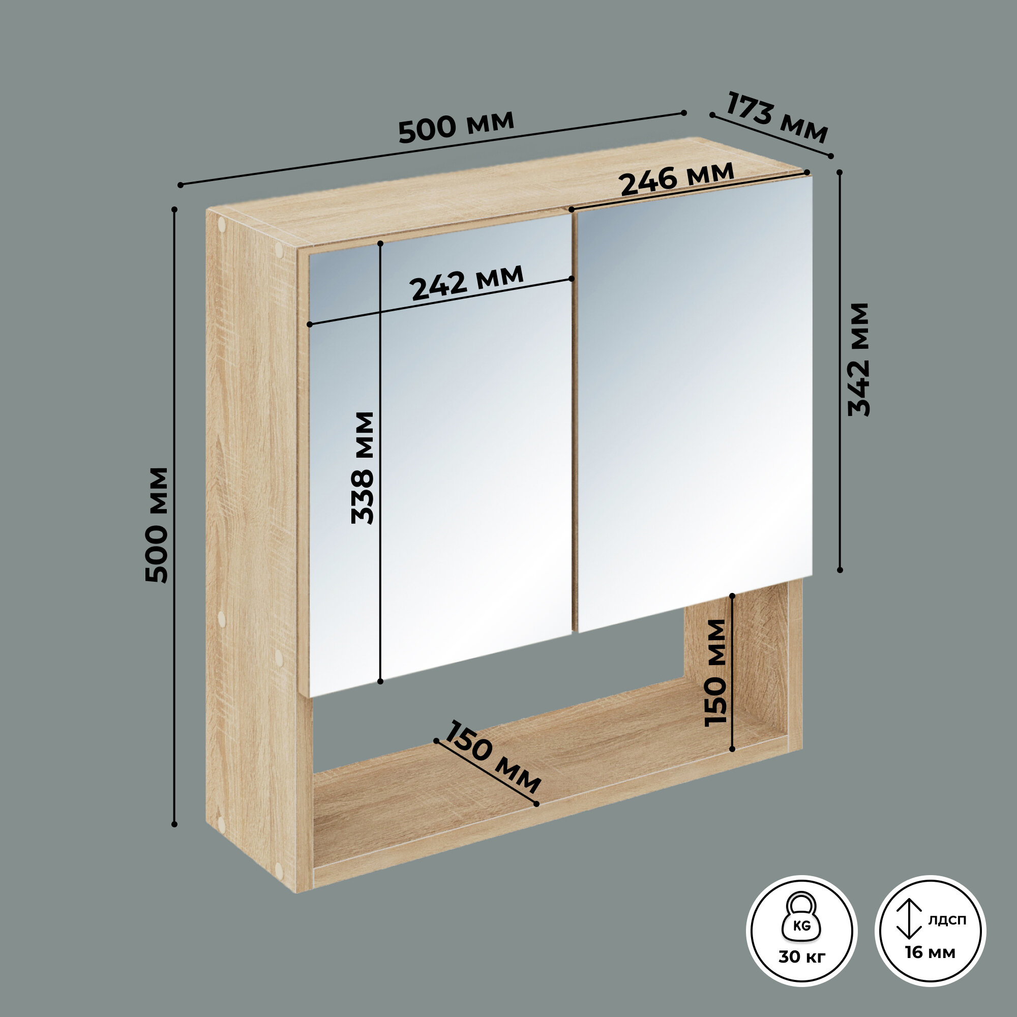 10 цен на Шкаф с зеркалом навесной для ванной или прихожей подвесной Кео ШКН-150 дуб сонома 500х173х500