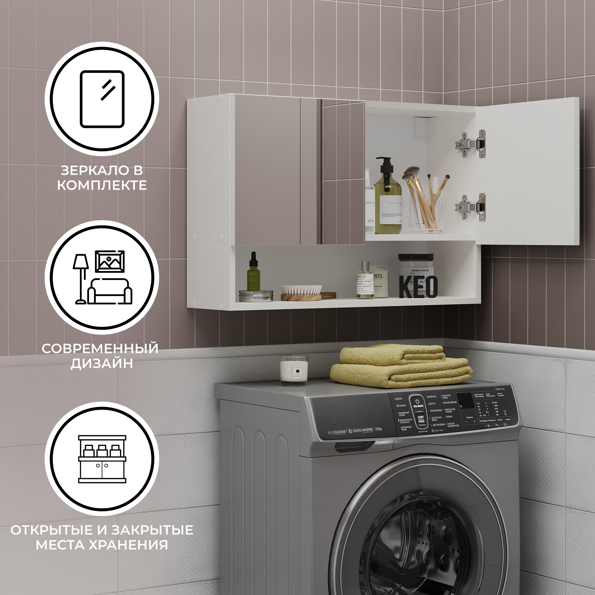 10 цен на Шкаф навесной распашной Кео ШКН-240 белый с зеркалами полками для вещей в ванную прихожую 500х225х740 мм