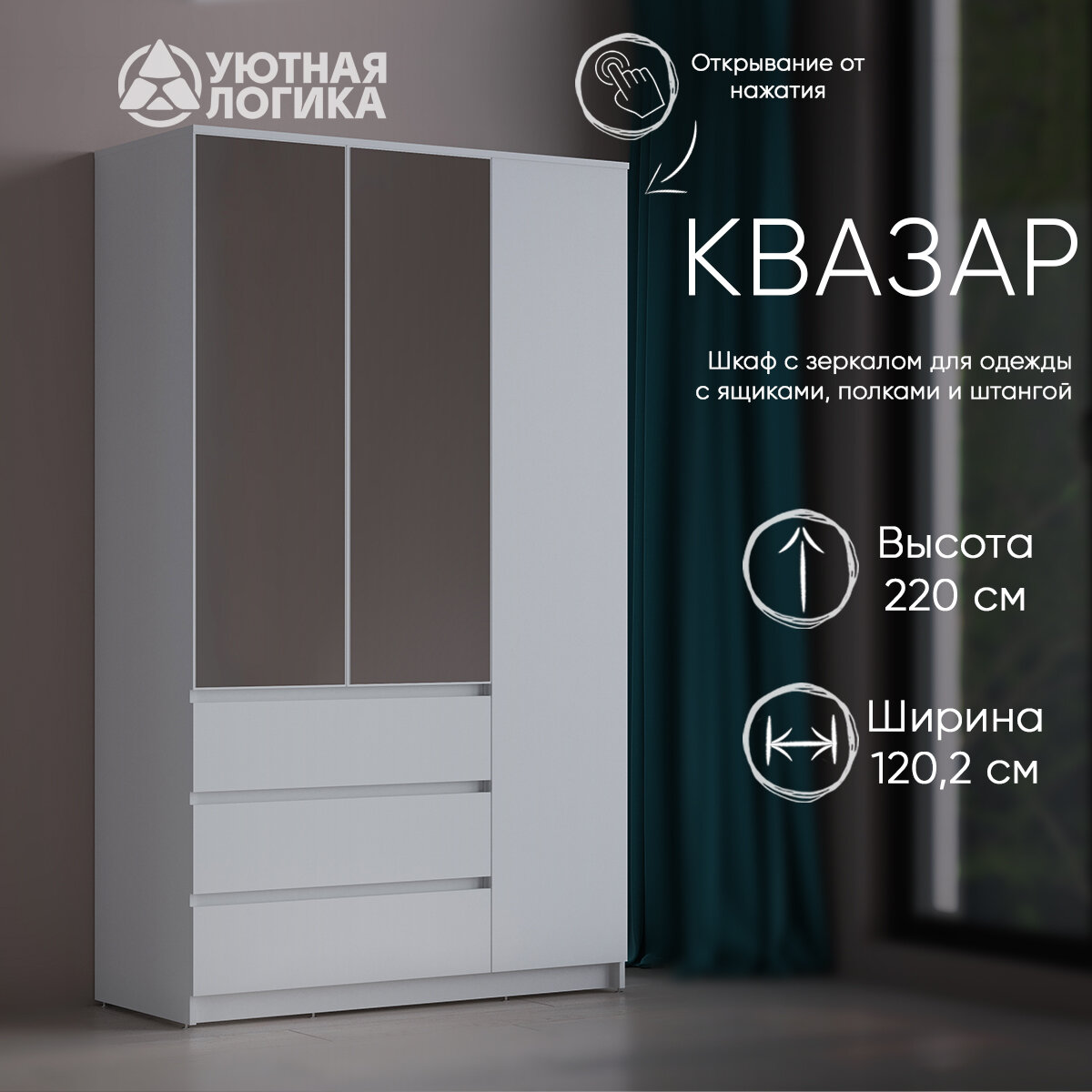 Отзывы на Шкаф трехдверный левый Квазар С зеркалом ШК-03L/ЗР 220*120*51,4 Белый