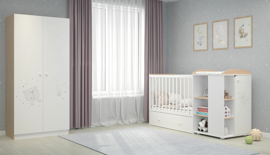 Кроватка-трансформер детская Polini kids French 800, Amis, с комодом, белый-серый