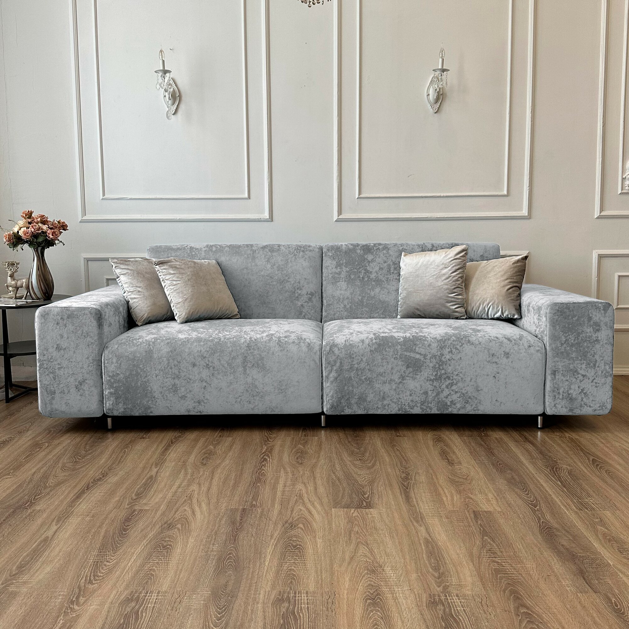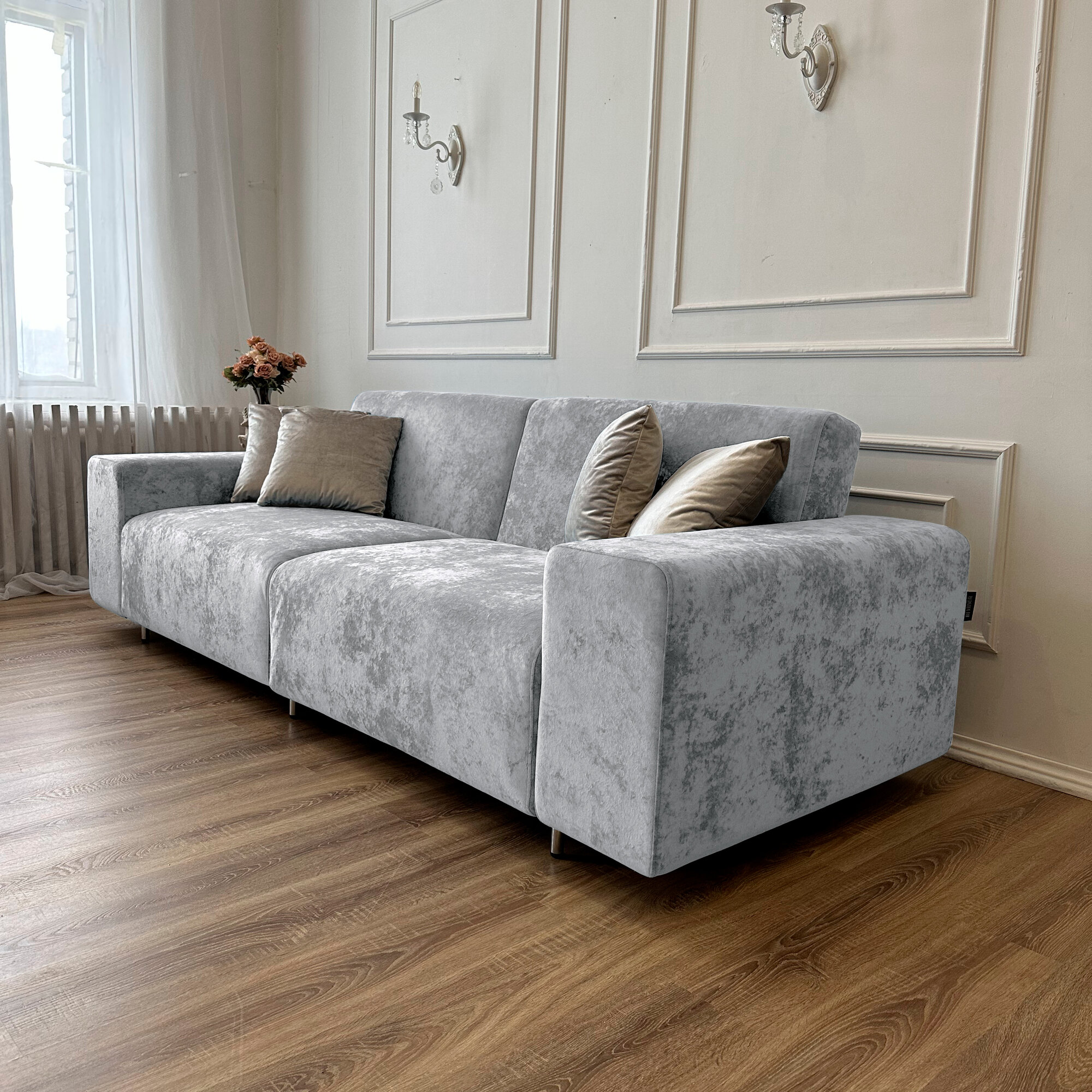 Диван-кровать Redsofa Аурис 260 см серебристый Ocean. Раскладной прямой диван со съемными чехлами, для дома и офиса. 58 190 ₽