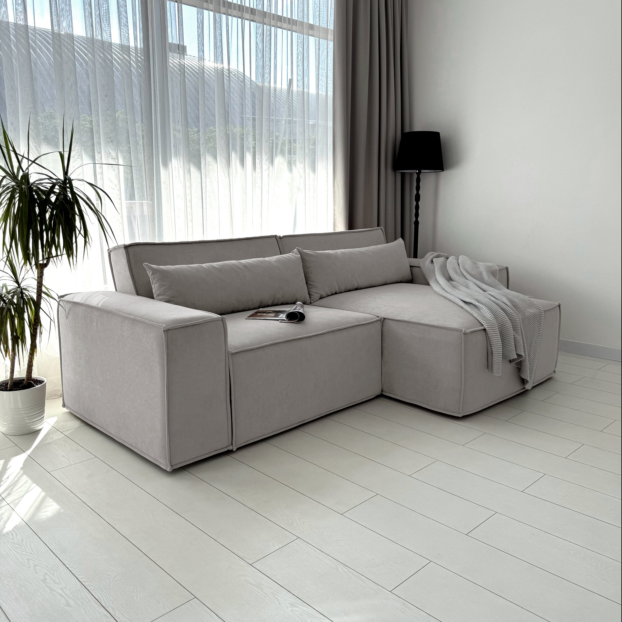 Диван-кровать Redsofa Пикассо 260 см светло-серый Teddi. Раскладной угловой диван со съемными чехлами, для дома и офиса. информация: