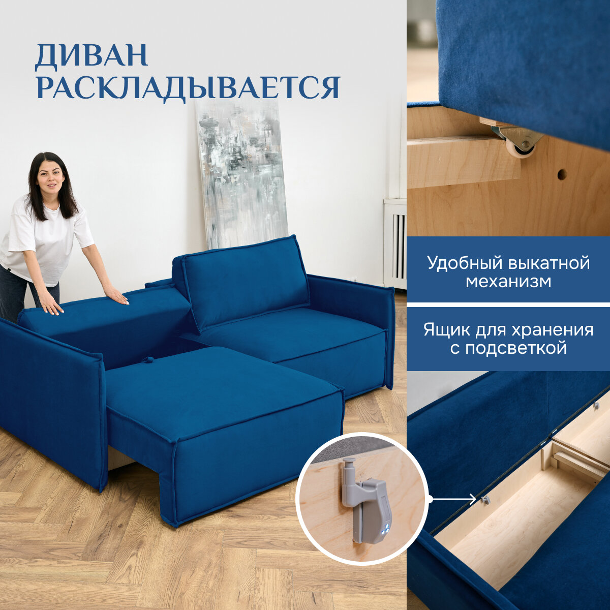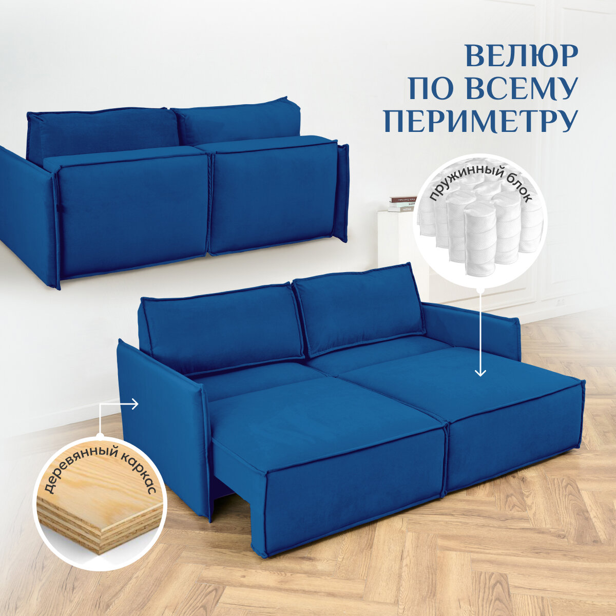 Диван-кровать Brendoss 318 диван раскладной, модульный, материал износостойкий велюр, цвет синий информация:
