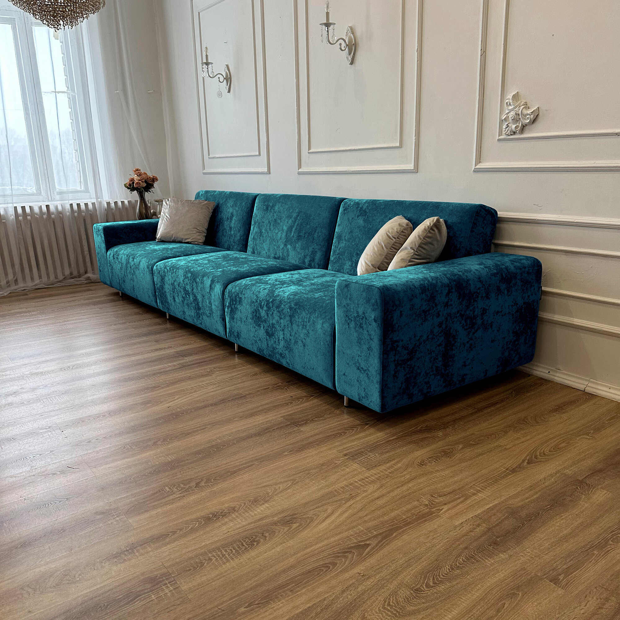 Диван-кровать Redsofa Аурис 360 см аквамарин Ocean. Раскладной прямой диван со съемными чехлами, для дома и офиса. информация: