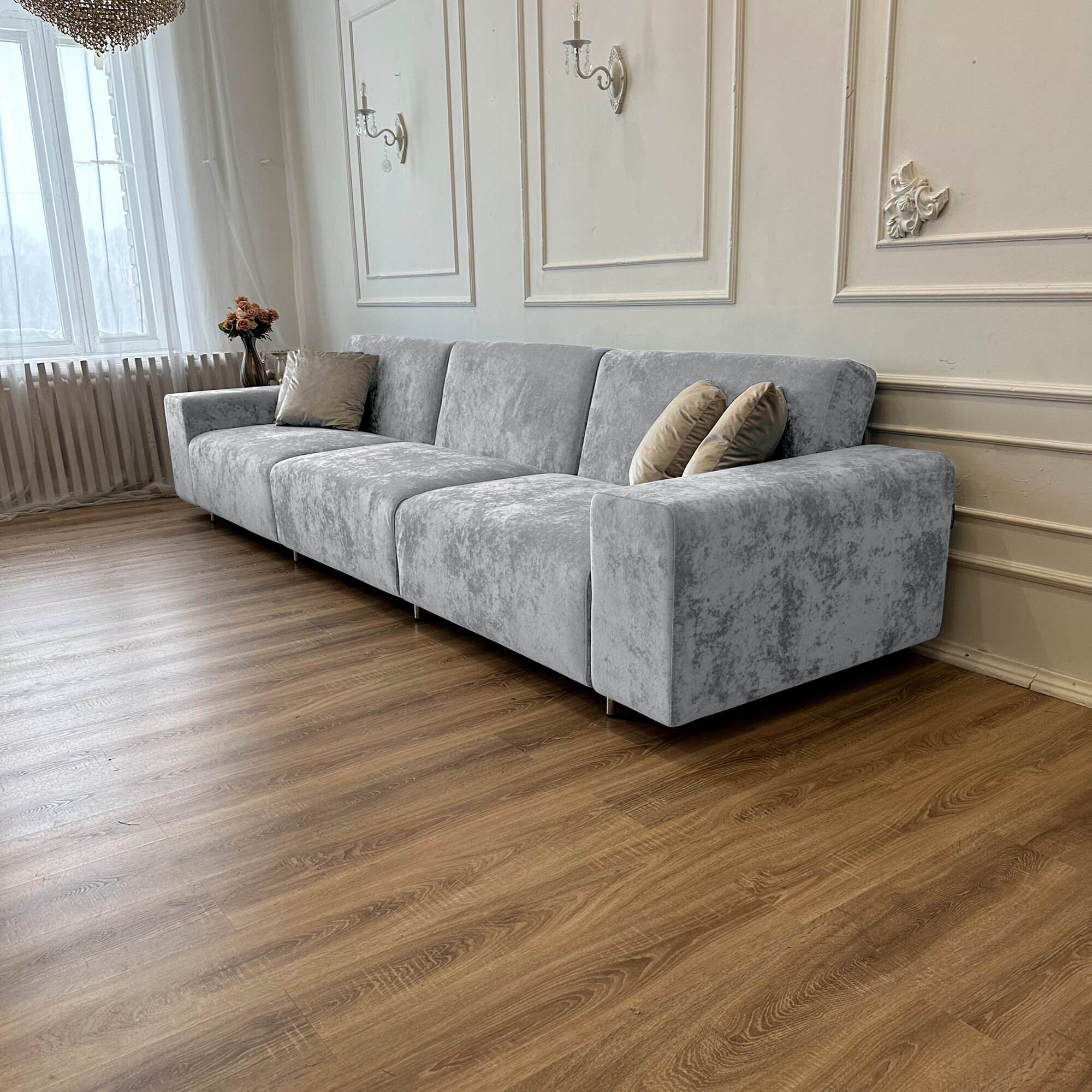 Диван-кровать Redsofa Аурис 360 см серебристый Ocean. Раскладной прямой диван со съемными чехлами, для дома и офиса. 69 148 ₽