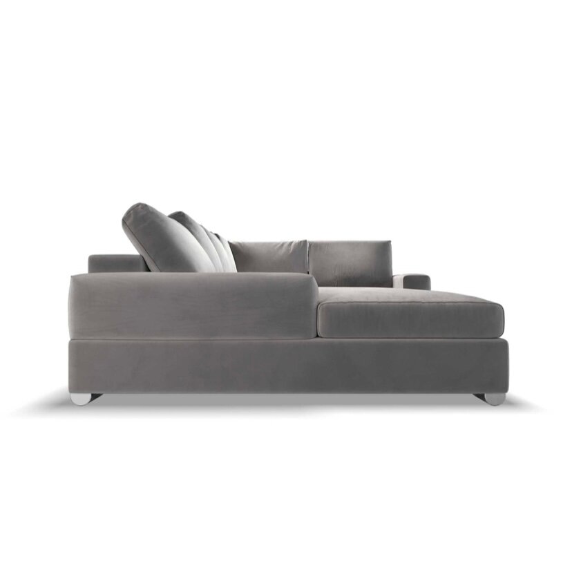 Диван угловой Атланта М левый угол, велюр серый, вставка велюр черный