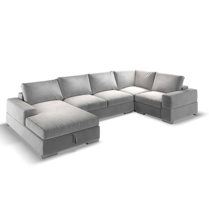 Диван угловой Атланта М левый угол, велюр серый, вставка велюр черный