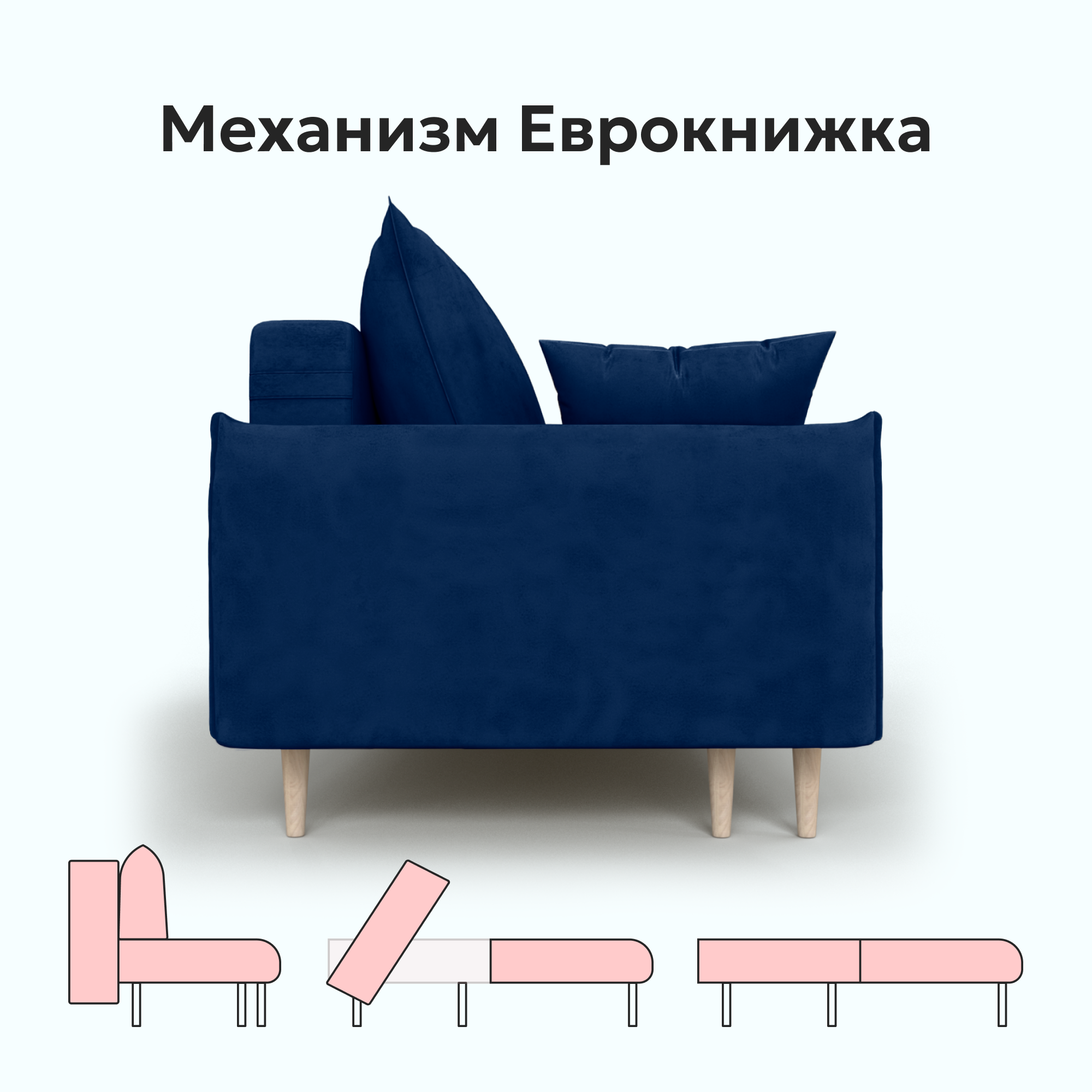 Диван-кровать Фьорд синий, Независимый Пружинный Блок, механизм Тик-так, 212х96х80 см, Спальное место 147х198 см информация: