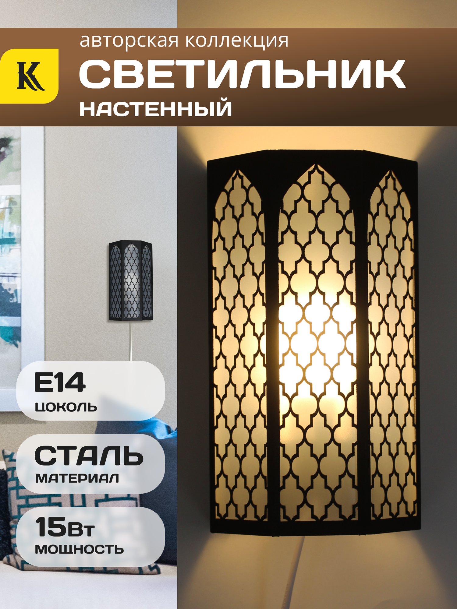 Интерьерный настенный светильник бра "INTERIOR-MOROCCO-SN-MV", цвет черный информация: