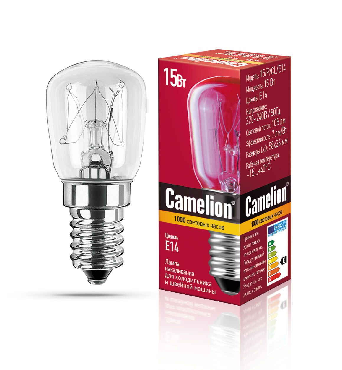 Отзывы на Лампа накаливания для холодильников и шв.машин Camelion, E14, 15W, 58x26, 15/P/CL/E14, (МП), 004734