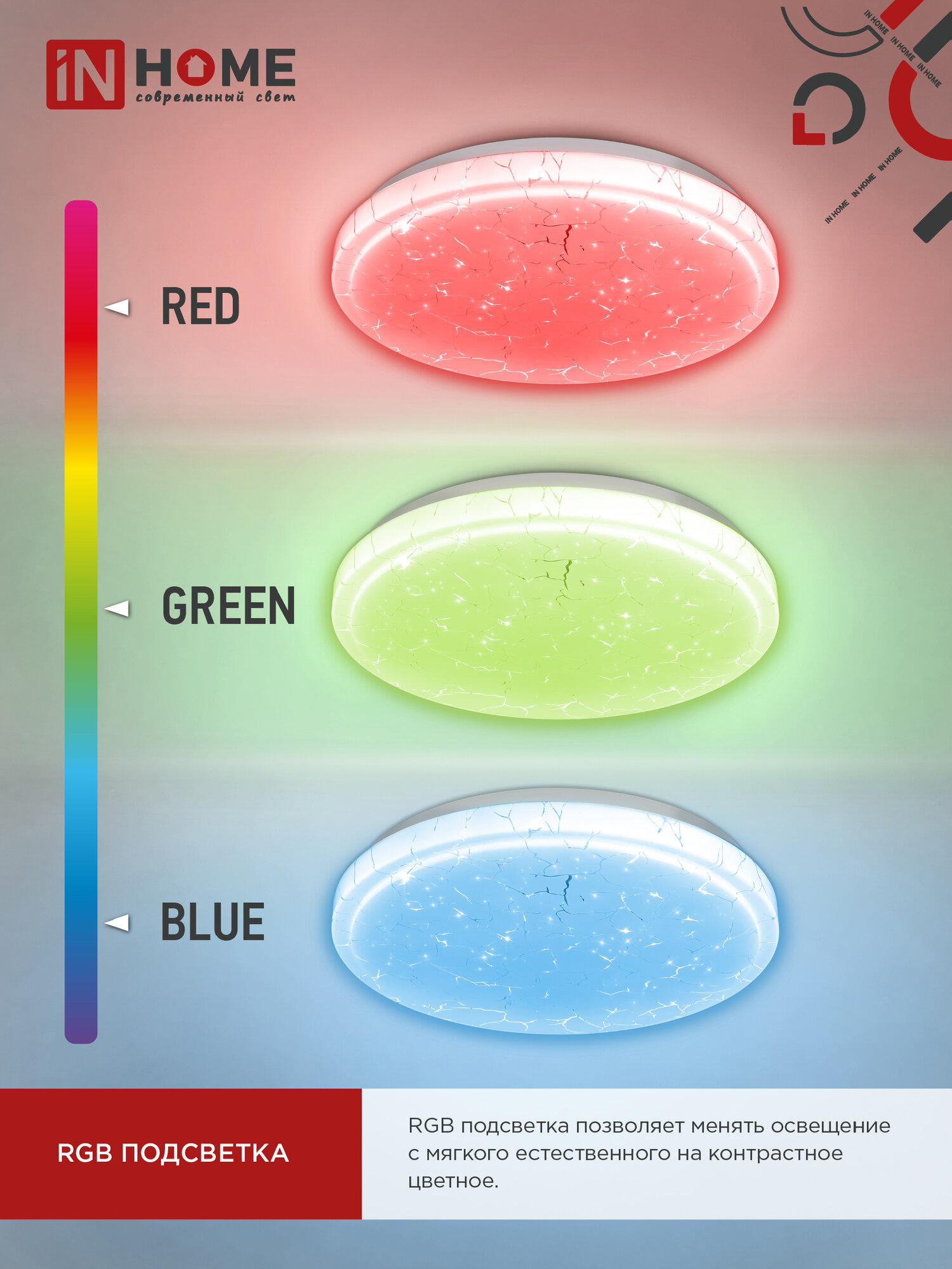 Светильник светодиодный COMFORT MYSTERY, RGB подсветка, 75Вт 230В 3000-6500К 6000лм, пульт ДУ, IN HOME 4 950 ₽