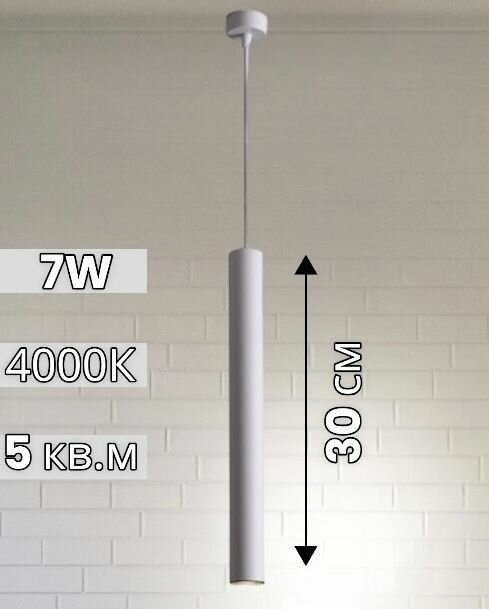 Современный светодиодный длинный подвесной светильник Труба 30 см Белый информация: