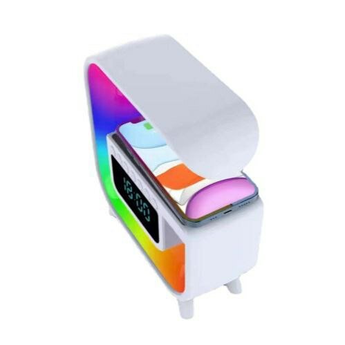 10 цен на Стильный Ночник с беспроводной зарядкой и Bluetooth колонкой белый