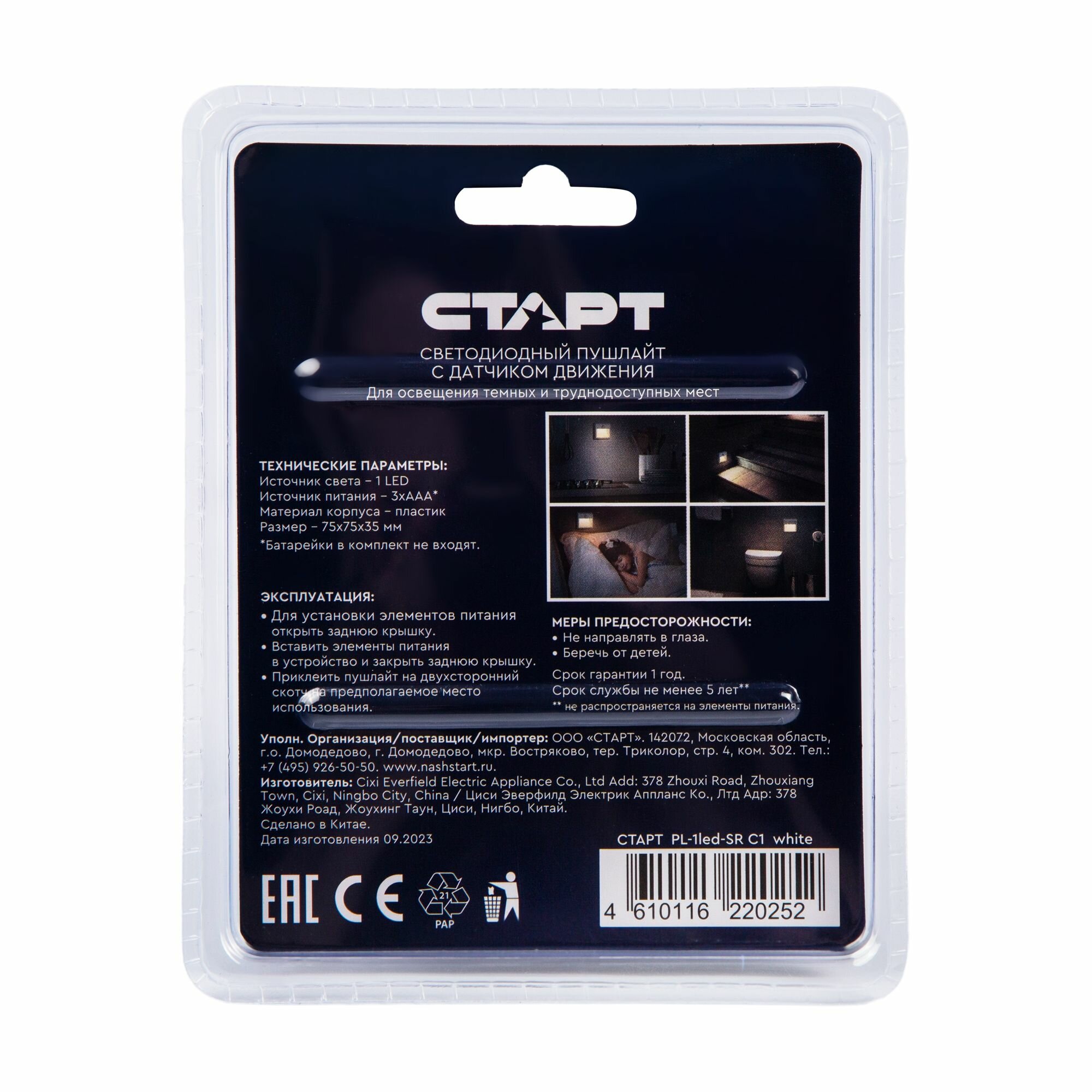 Светильник ночник светодиодный с датчиком движения старт настенный на батарейках информация: