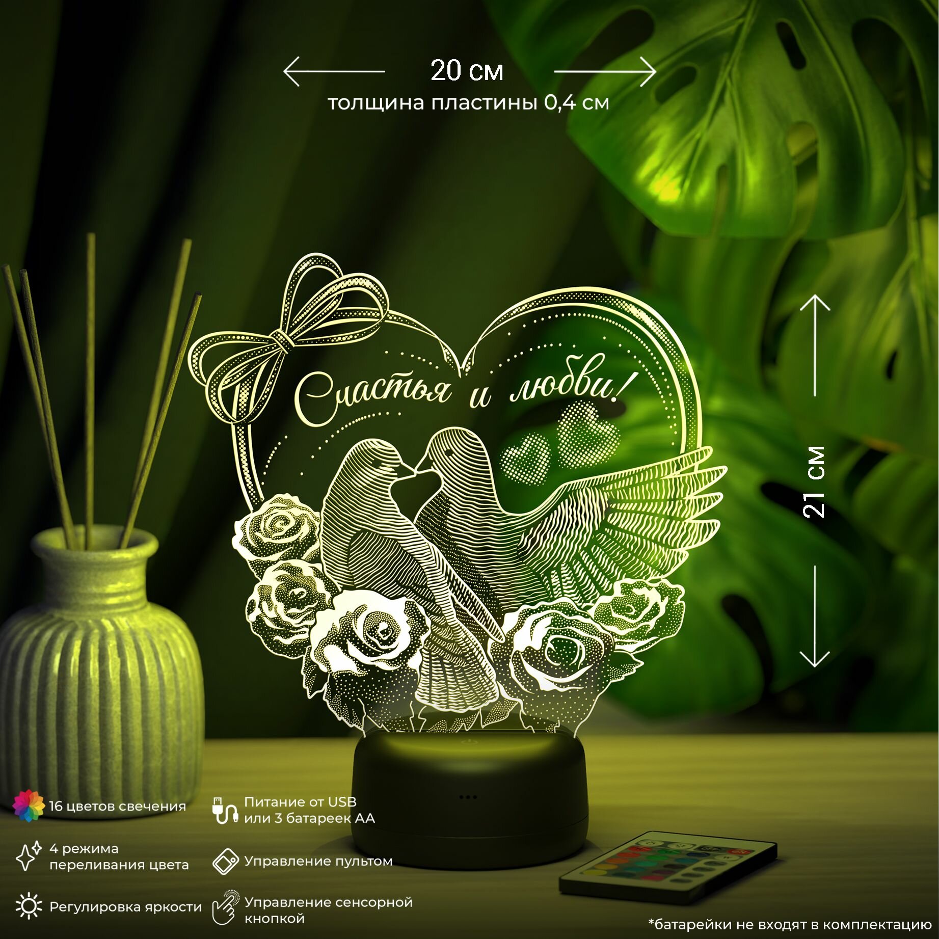 Ночник "Счастья и Любви - Голуби" на свадьбу информация: