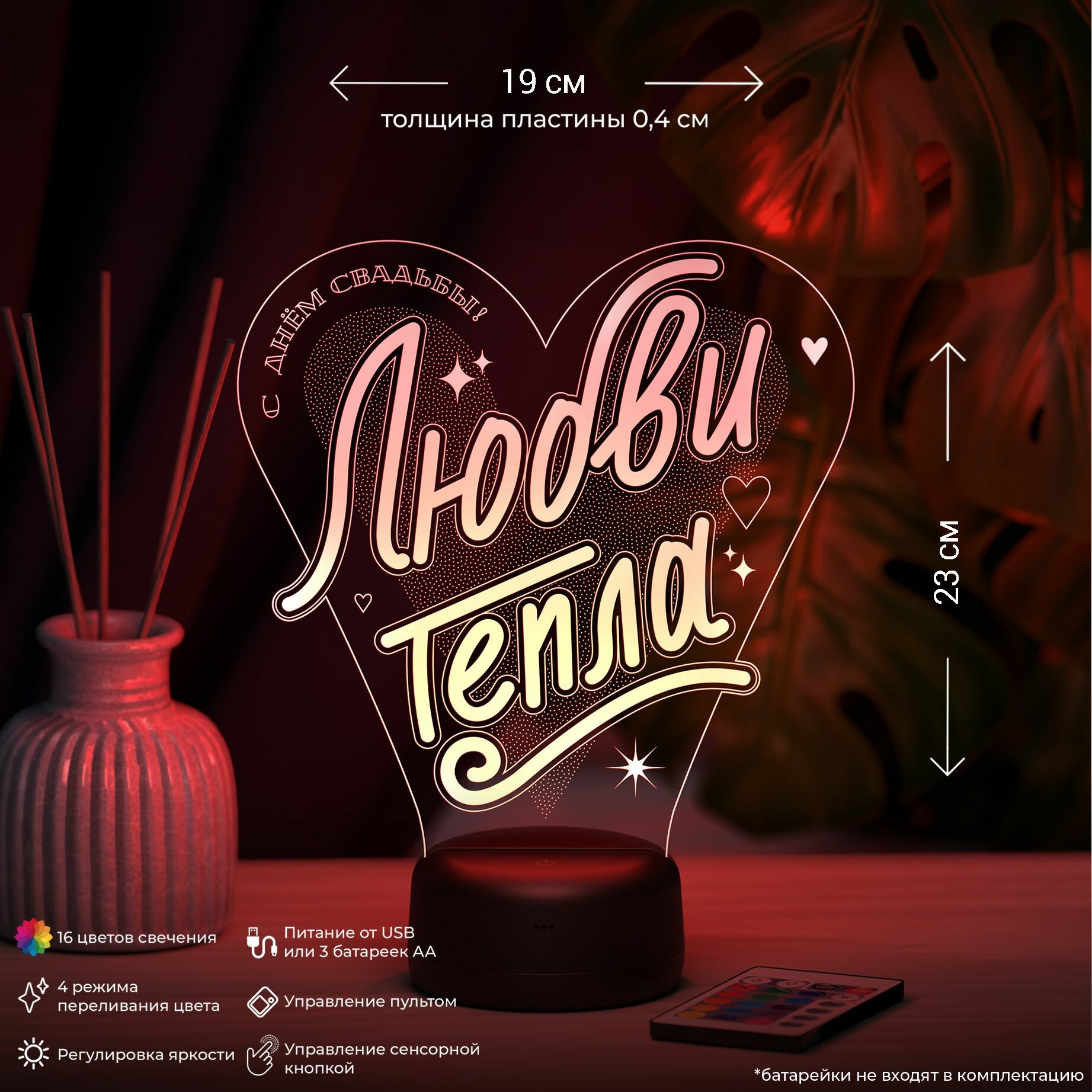 10 цен на Ночник "Любви, тепла" подарок на свадьбу, молодоженам