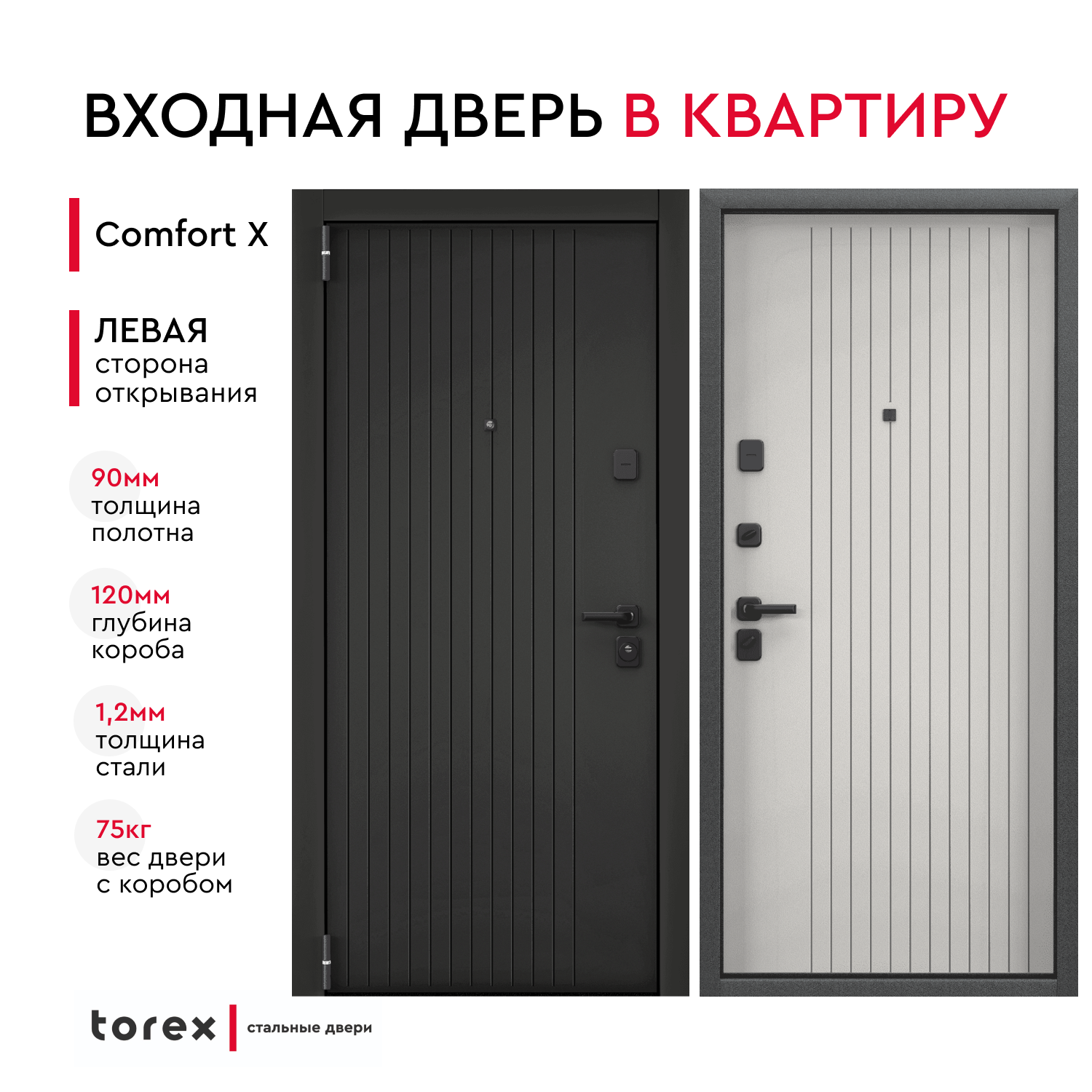 Дверь входная металлическая в квартиру Torex Comfort X 860х2050 левая, усиленная защита и шумоизоляция, антикоррозия, замки 4ый класс информация: