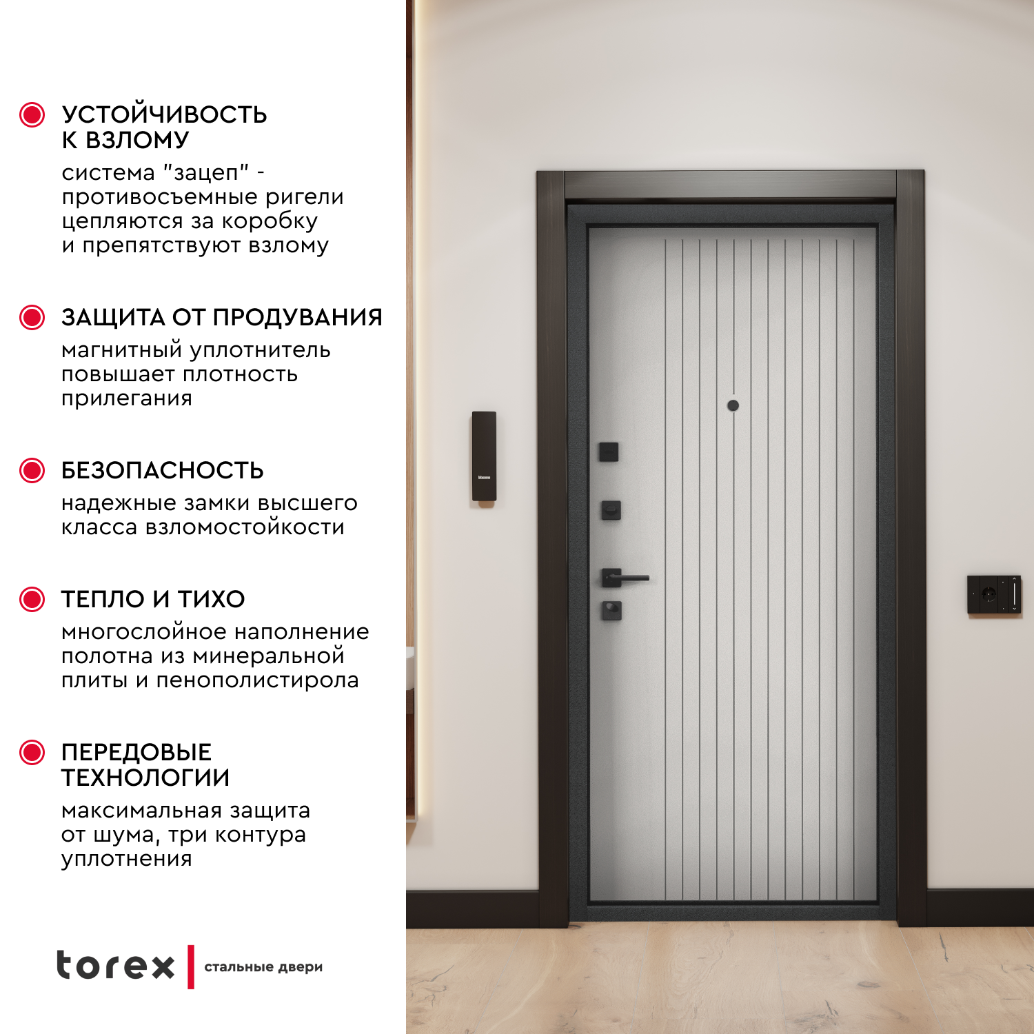 Отзывы на Дверь входная металлическая в квартиру Torex Comfort X 860х2050 левая, усиленная защита и шумоизоляция, антикоррозия, замки 4ый класс