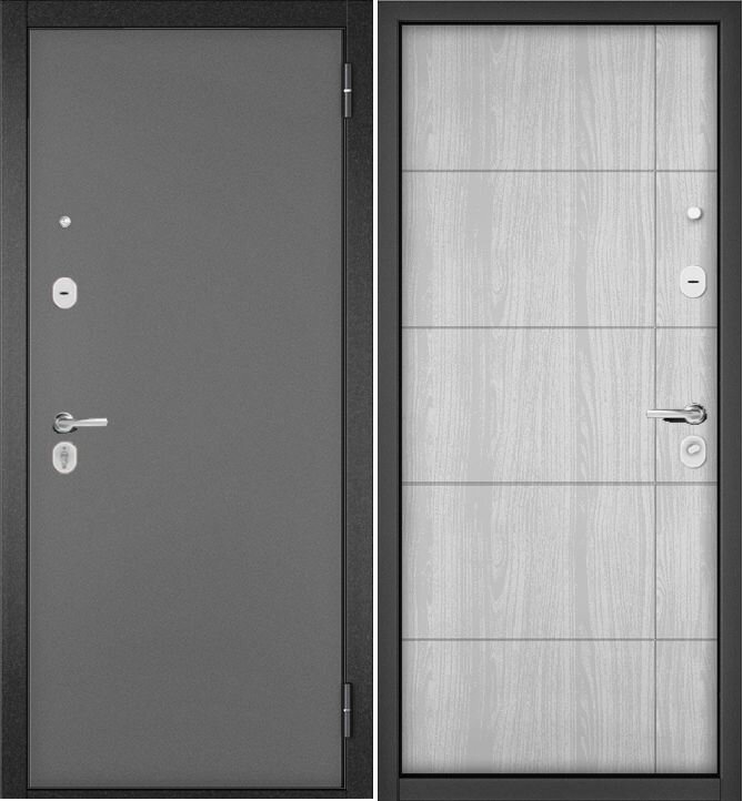 Дверь входная мегатрон WOOD 1 Ясень Дип Графит - Белый снег 860 Правая