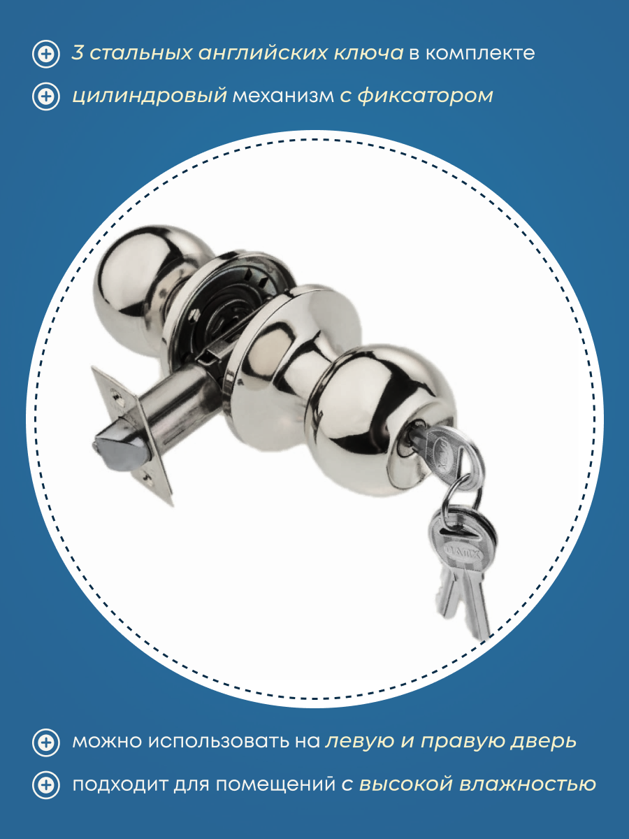 Ручка-защелка кноб дверная с замком (ключ/фиксатор) круглая поворотная, для межкомнатной двери/Комплект ручек для межкомнатных дверей Хром информация: