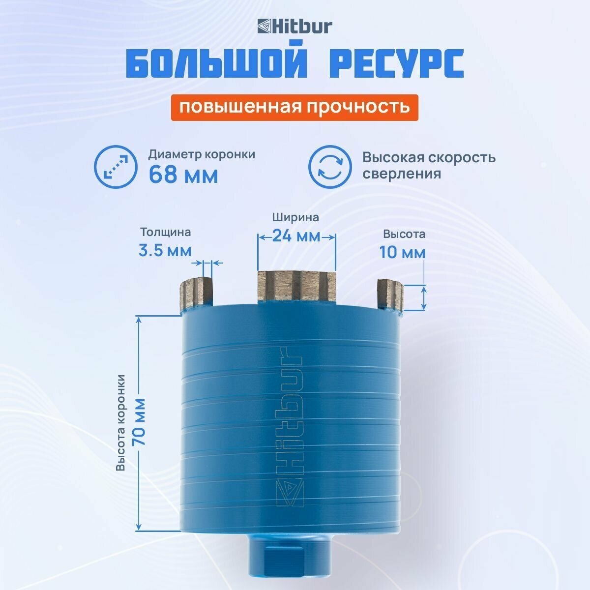 Коронка по бетону и кирпичу 68 мм алмазная для подрозетников Hitbur с боковым пылеудалением и держателем SDS Plus