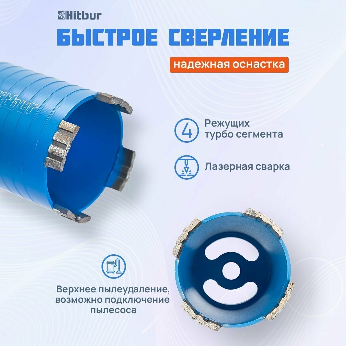 Коронка по бетону и кирпичу 68 мм алмазная для подрозетников Hitbur с верхним пылеудалением и держателем SDS Plus