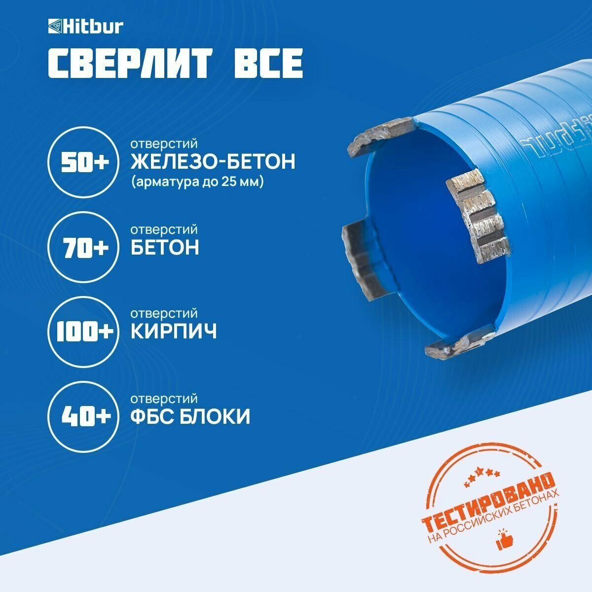 Коронка по бетону и кирпичу 72 мм алмазная для подрозетников Hitbur с боковым пылеудалением и держателем SDS Plus