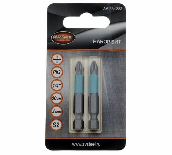 Биты PH2 50мм S2 2шт "AV Steel" информация: