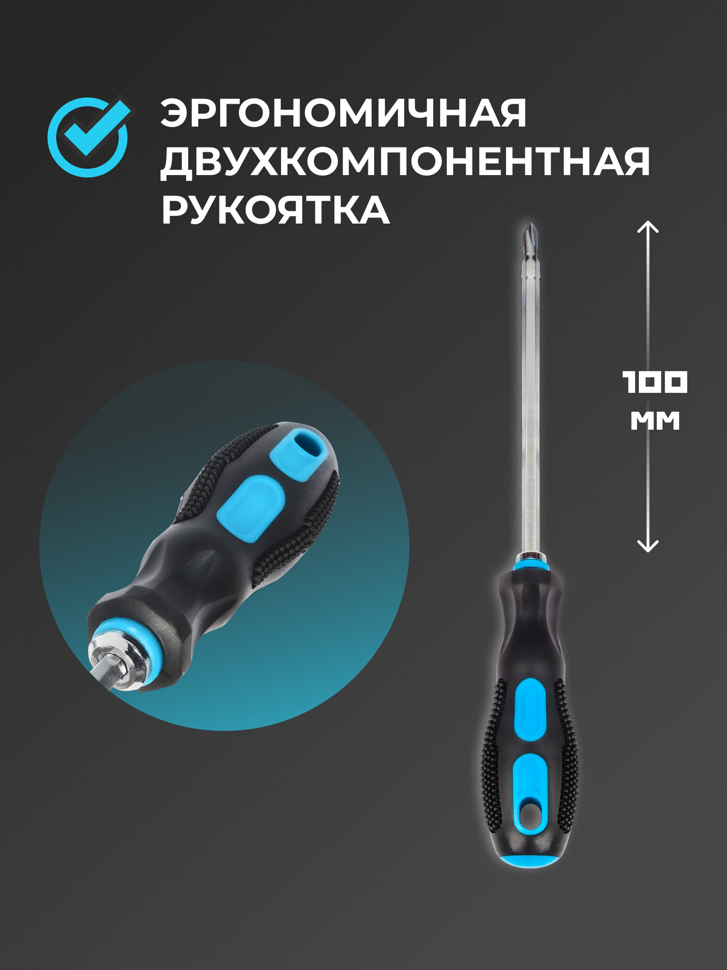 10 цен на Отвертка двусторонняя, прямая, крестовая, PH2, SL6, 100 мм