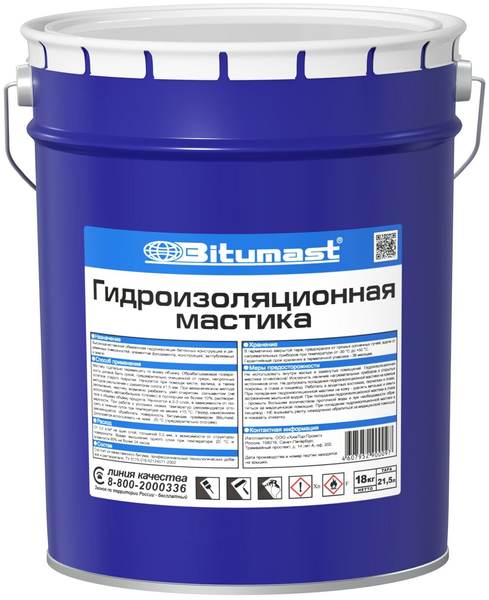 | Дополнительная информация | Мастика гидроизоляционная Bitumast 21,5л |